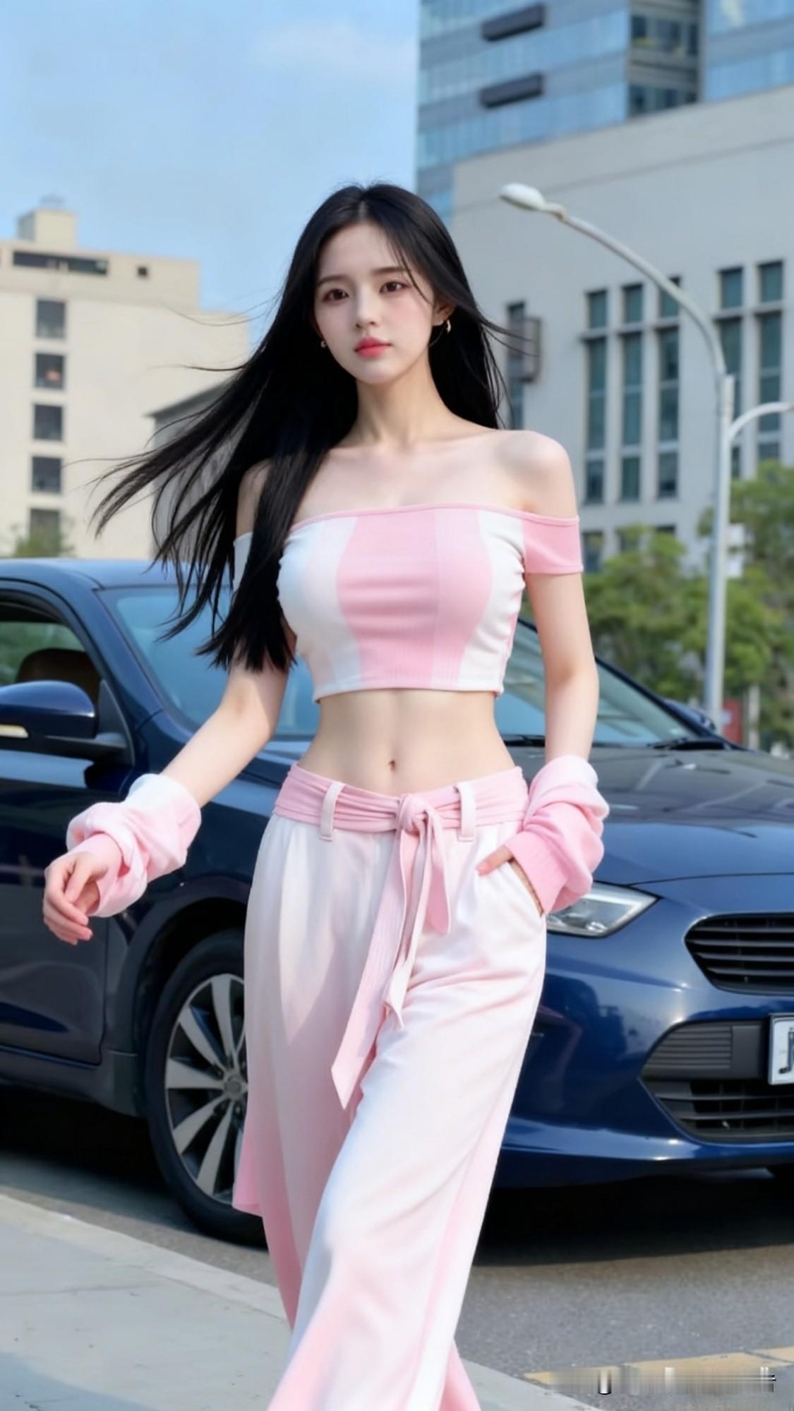 元气少女穿搭指南💗粉色露肩上衣+阔腿裤,元气满满!