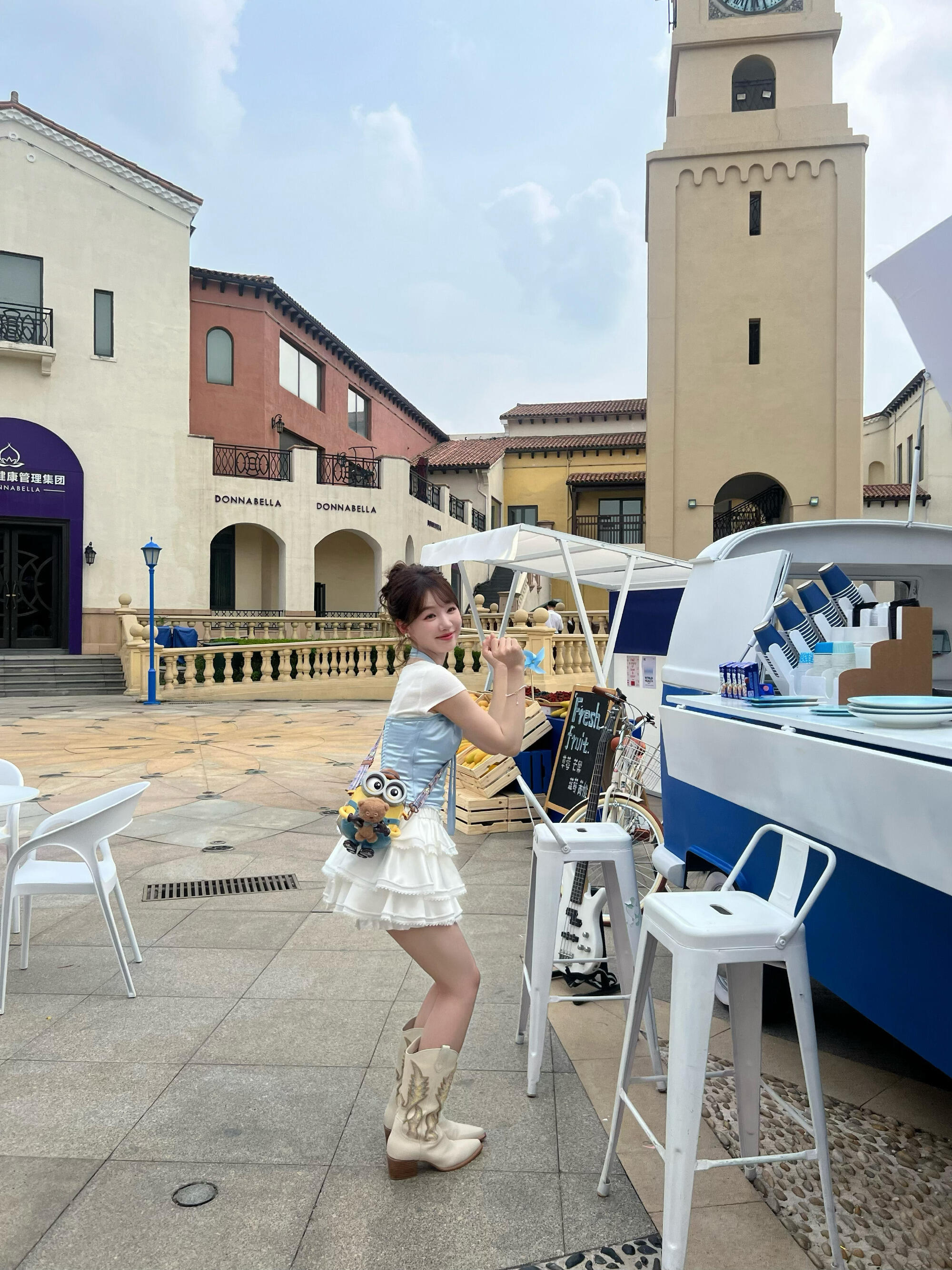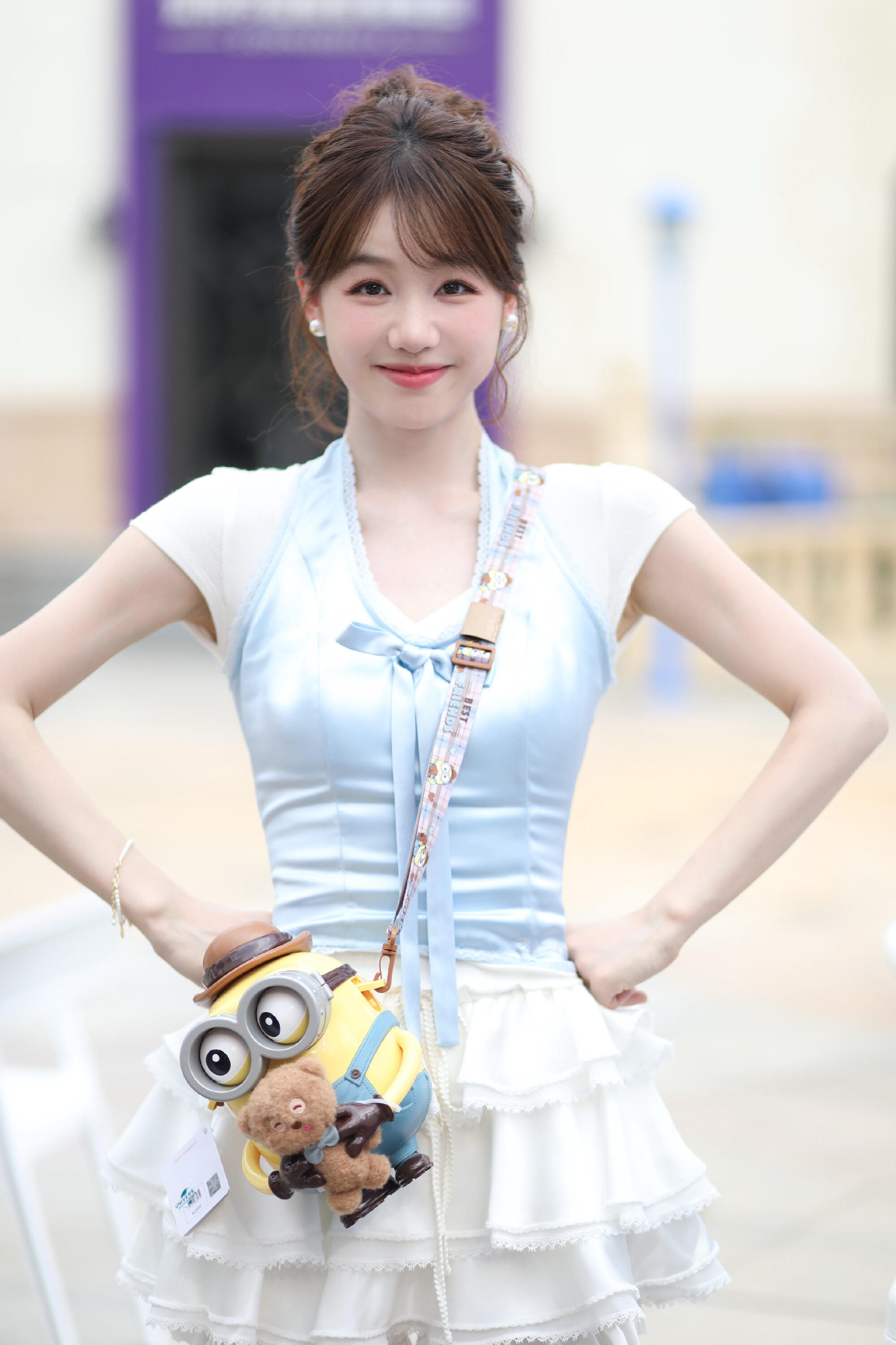 吴艳妮在成都穿着短裤大腿看起来很粗壮,表情自信又张扬