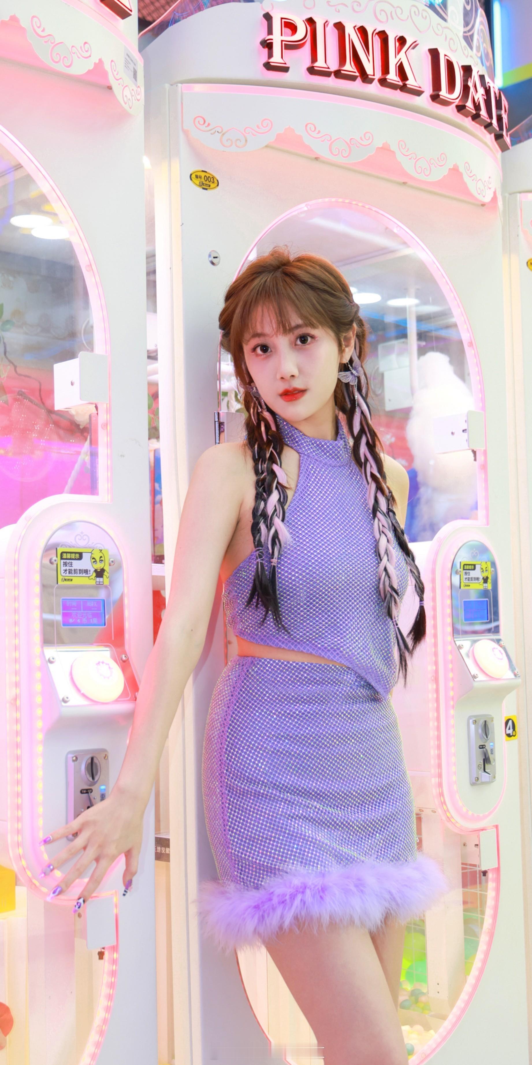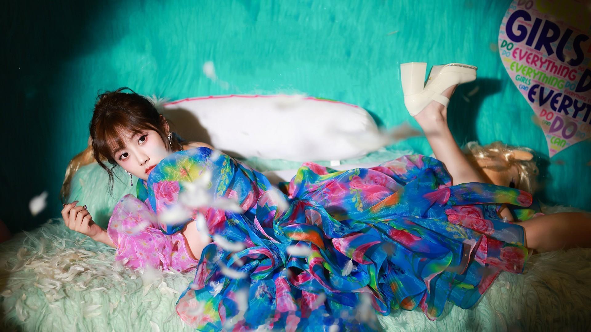 杨超越粉色花朵纱裙薄纱轻盈浪漫