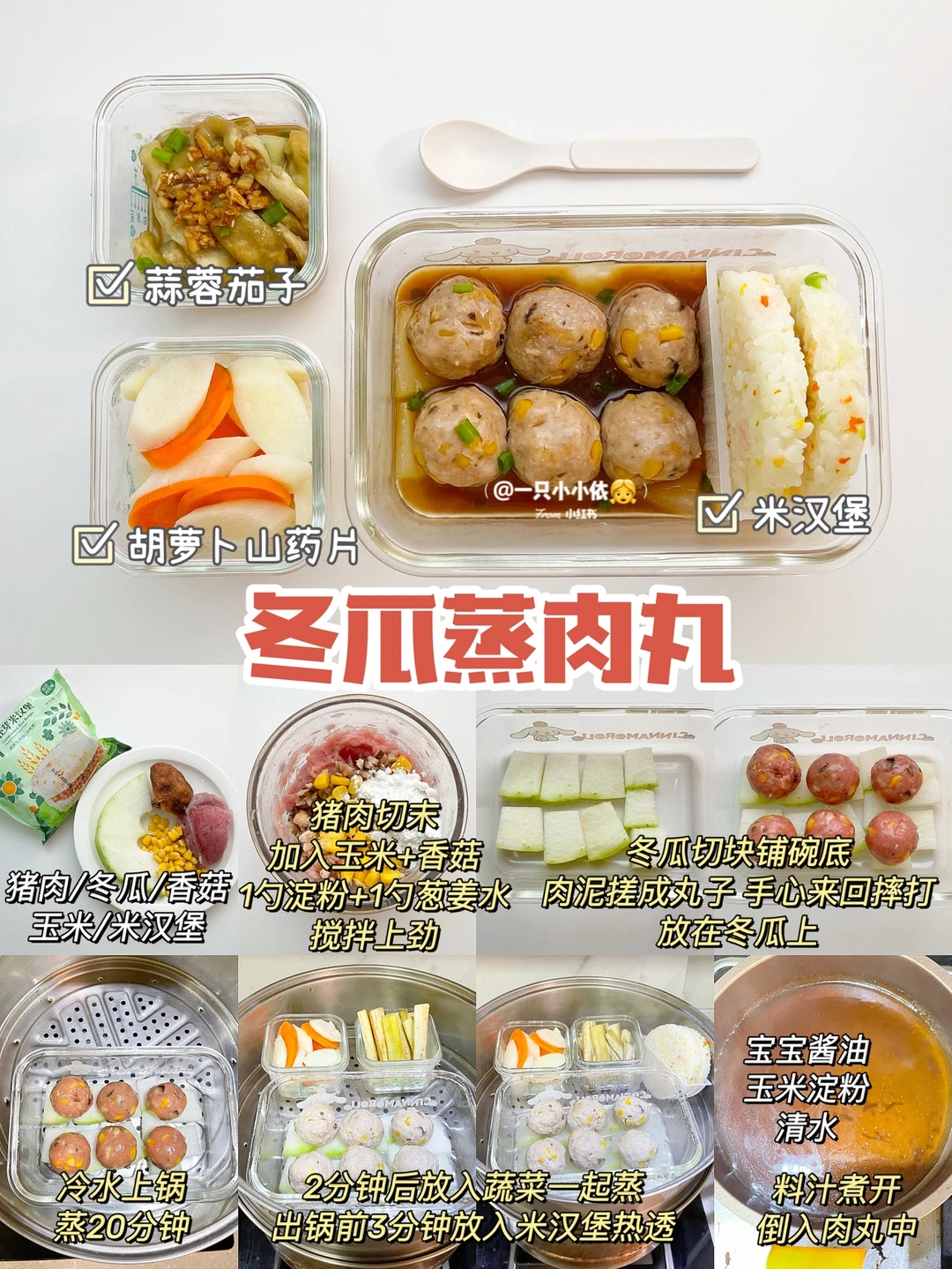 🍡冬瓜蒸肉丸|蒜蓉茄子+胡萝卜山药片+米汉堡