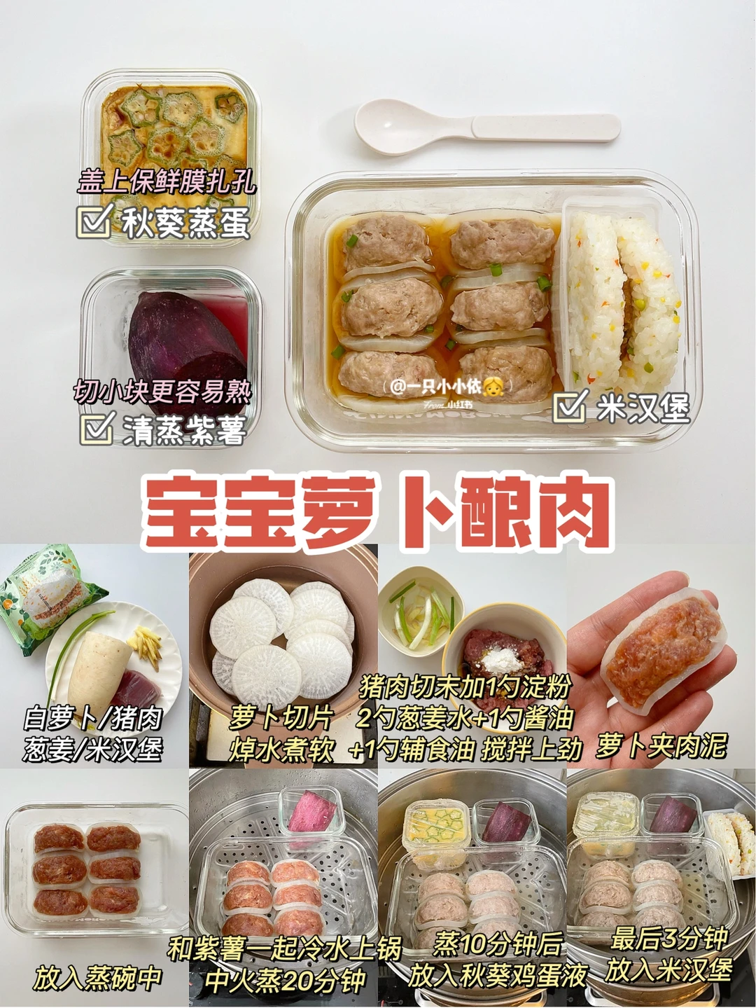 🥕宝宝萝卜酿肉|秋葵蒸蛋+清蒸紫薯