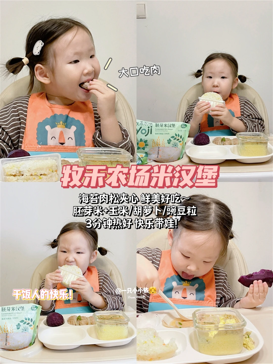 吃腻了普通大米,可以试试牧禾农场家的米汉堡哦☺️海苔肉松夹心,香酥鲜美,让单调的米饭有了灵魂味道!胚芽米中混合玉米、土豆、胡萝卜等蔬菜粒,营养指数直接拉满👏🏻小小1个,宝宝一顿刚好😎而且它自带的盒子可以直接加热,上锅蒸或微波炉3分钟就🉑️,简直太方便了!我们家已经囤了一格冰箱抽屉啦~