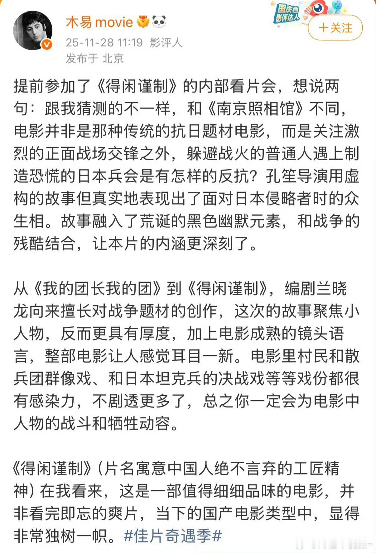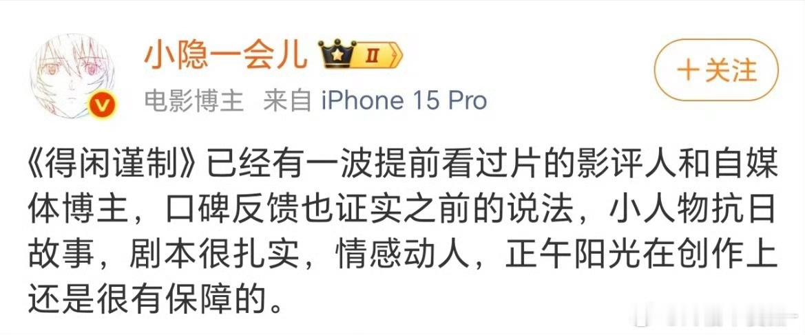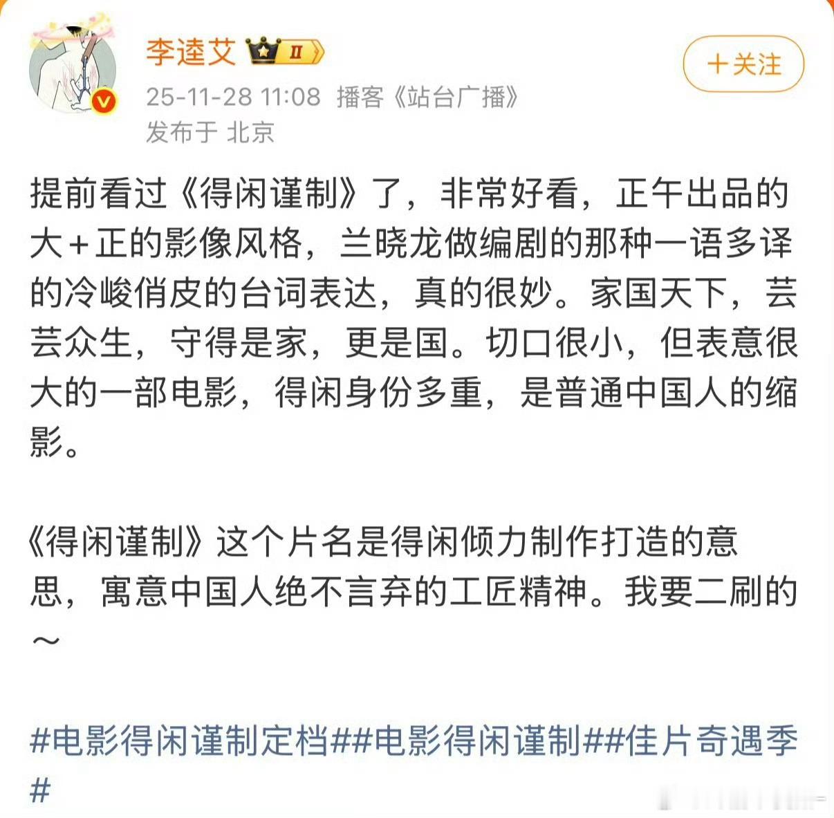 刷到一批业内看完肖战的《得闲谨制》发了看片repo 是非常不错的一部电影 得闲身份多重 是普遍中国人的缩影 太期待了!12.6不见不散得闲谨制把编剧排在主创第一位