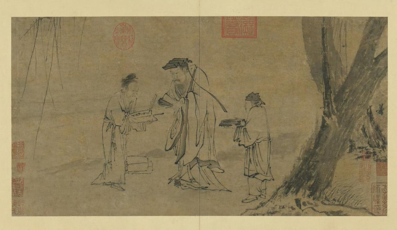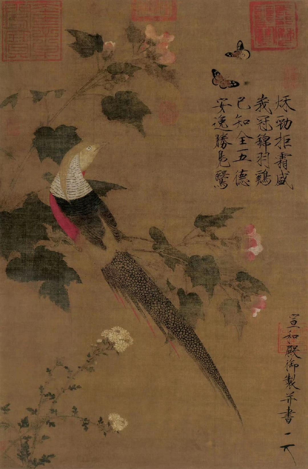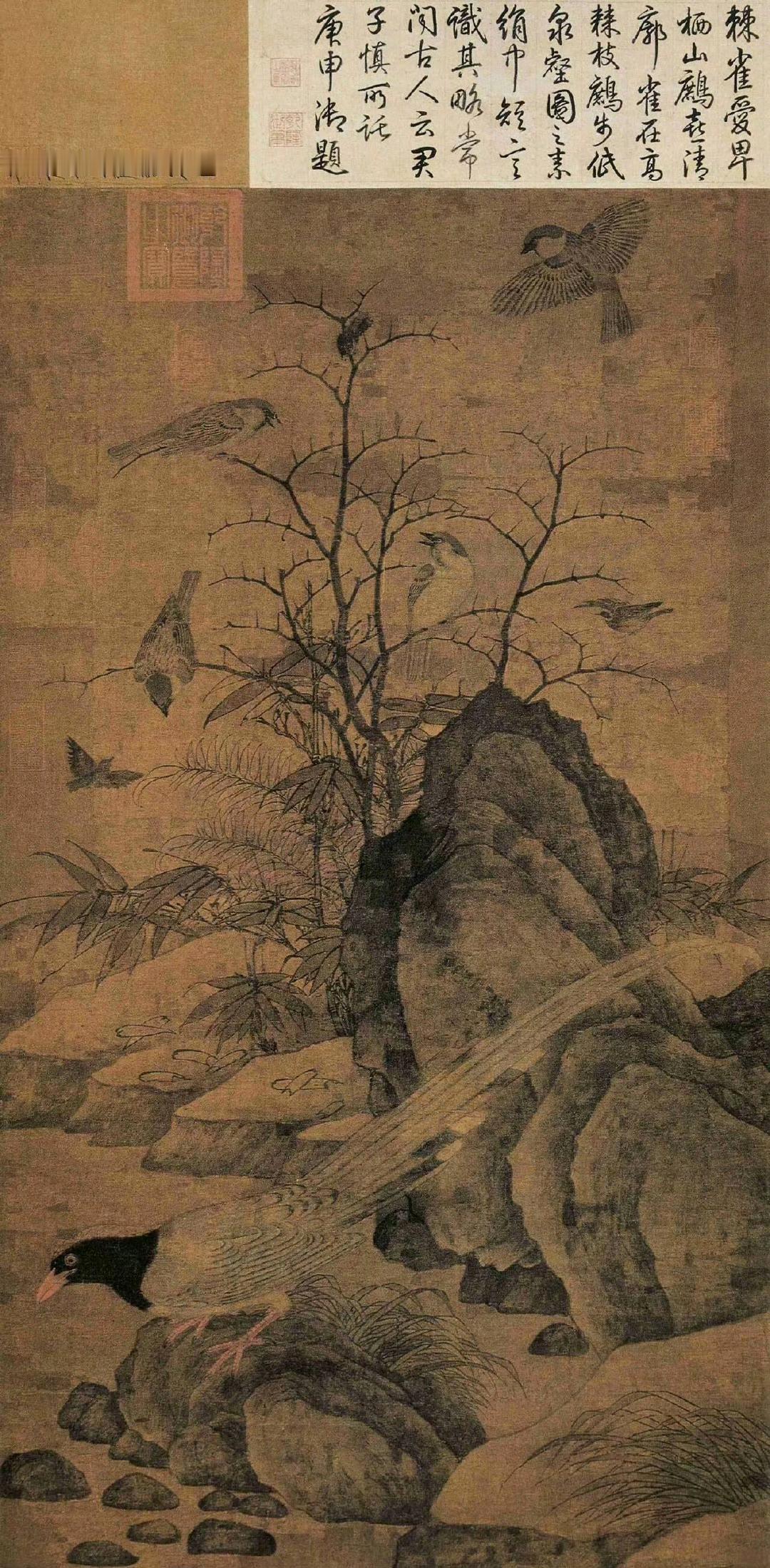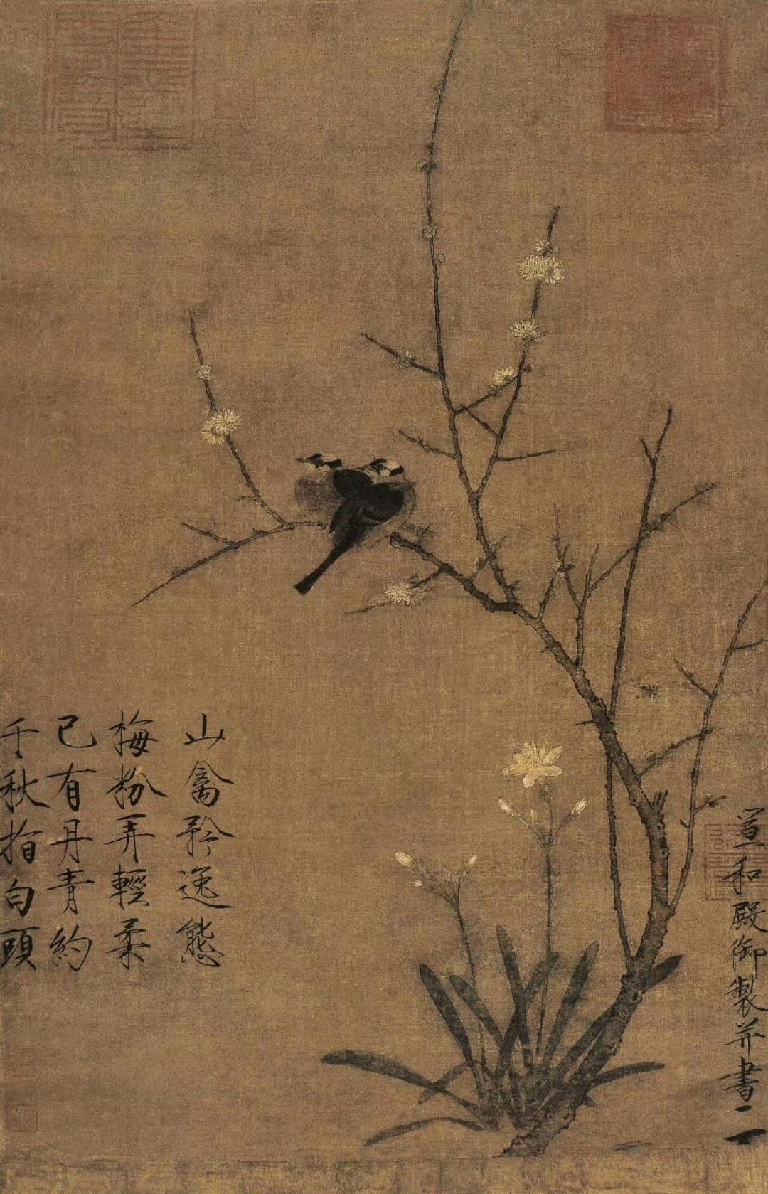 八大山人苏东坡与朝云,故宫博物院藏。 梁楷羲之题箑图,台北故宫博物院藏。 【鱼石图】朱耷 【双鹰图】林良 【山鹧棘雀图】黄居寀 【桃鸠图】赵佶 【腊梅山禽图】赵佶 【芙蓉锦鸡图】赵佶 【墨竹图】文同