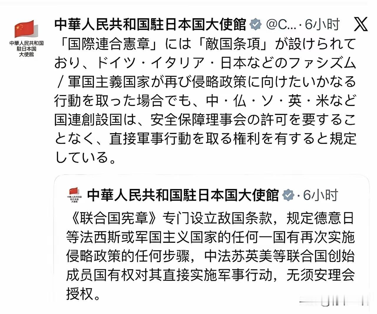 中国重提“敌国条款”,韩国直接炸锅:话题量破10亿,全网喊着“警惕日本”!平时和我们偶尔磕绊的韩国,咋和我们突然站到同一战线? 这不是巧合,是日本的野心让邻居们忍无可忍。《联合国宪章》第53、77、107条明确:反法西斯同盟国可直接制止德意日的侵略动向,无需联合国授权。这道“紧箍咒”,恰恰戳中了韩国的三重痛处。 第一重,历史血债刻进骨子里。35年殖民统治留下三大死结:慰安妇问题被日本以《韩日请求权协定》搪塞,强征劳工赔偿遭日企拒不认账,独岛主权更是寸步不让的底线。伤口从未愈合,日本右翼还频频挑衅,这哪是邻居,分明是埋在身边的定时炸弹。 第二重,现实威胁已兵临城下。日本2025财年防卫预算飙至8.7万亿日元,还要提前实现GDP占比2%的目标,甚至被美国施压冲到3.5%。买“战斧”导弹、改准航母、讨论“核共享”,和平宪法早已名存实亡,军事扩张的獠牙露得明明白白。 第三重,地缘棋局踩碎安全红线。日本非要跟北约勾肩搭背,又是设外交使团又是搞军工合作,把欧洲的军事集团拉到东亚。这哪是寻求安全,分明是要打破地区平衡,让韩国陷入“前后受敌”的险境。 说到底,中韩这次同频,不是临时结盟,是共同的安全焦虑让利益诉求重合。日本总想摘掉“敌国”帽子,却忘了:条款是死的,人心是活的;历史是铁的,野心是要付出代价的。