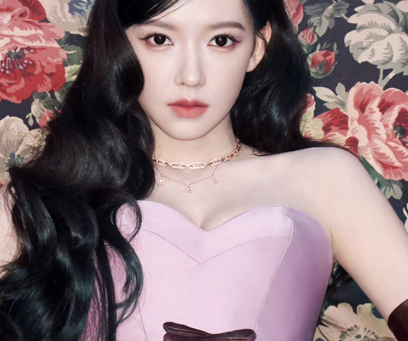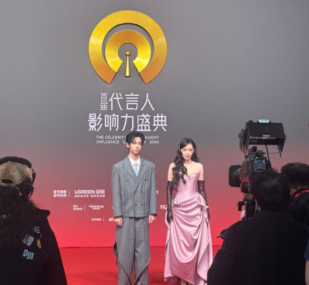 程潇一袭薰衣草紫色抹胸褶皱长裙,尽显优雅妩媚