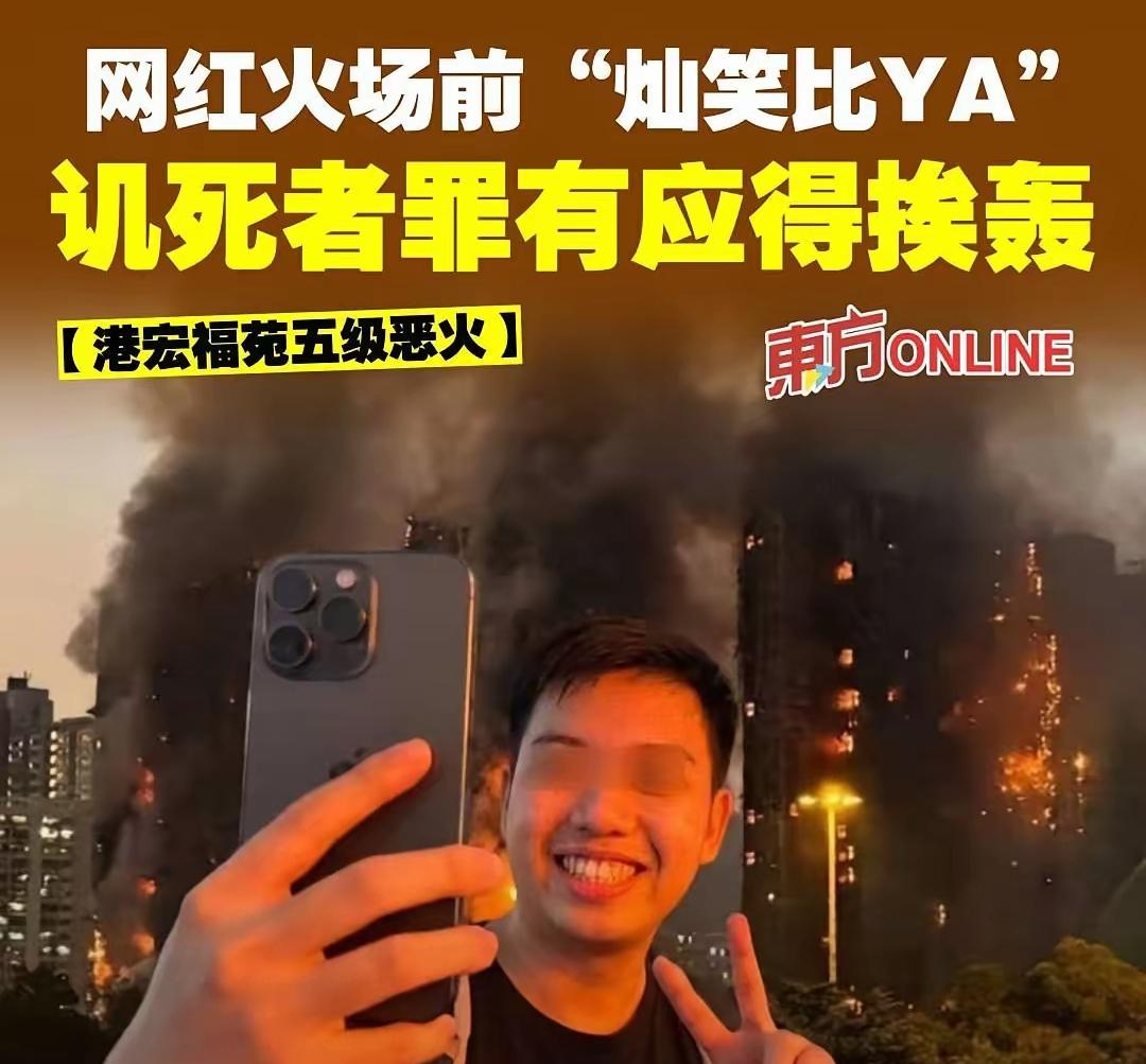 灾难面前的冷血发言,比大火更寒心! 香港大埔宏福苑128条生命葬身火海,全港都浸在悲痛里,居然有人拿亡者博眼球? 争议网红Kenny(郑汝铿)真的刷新下限!火灾后跑去现场拍视频,说死伤者“罪孽深厚”才遭此横祸,结尾还露出诡异笑容,甚至鼓动大家别同情逝者。要知道他早有黑历史,台风天偷猫被抓过,现在又踩着灾难流量无底线炒作。 流量不是作恶的遮羞布,同理心是做人的底线。灾难面前的冷血言论,比大火更伤人,这样的“网红”根本不配被关注。你觉得该怎么抵制这种无底线博眼球的行为?来评论区聊聊~