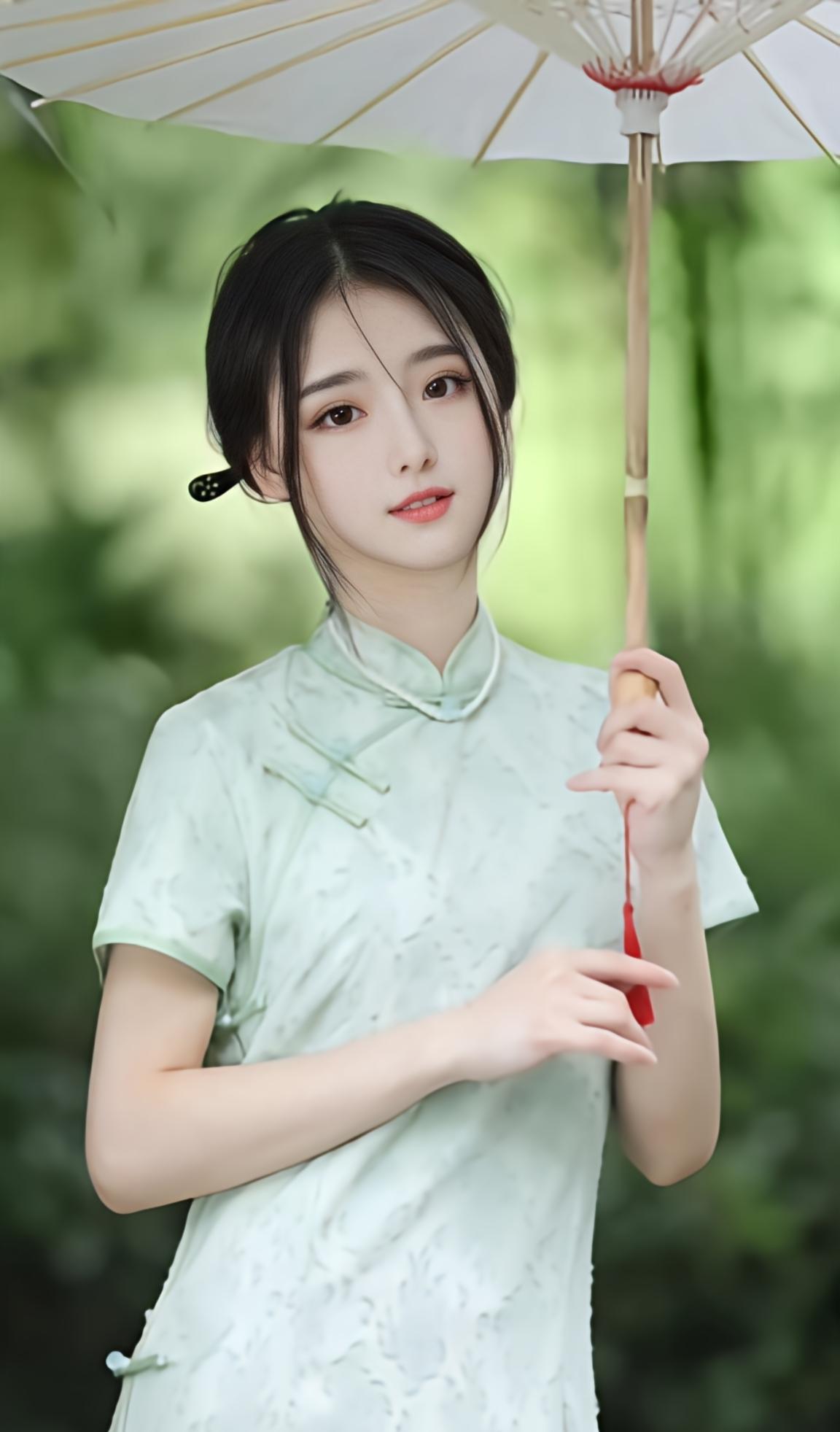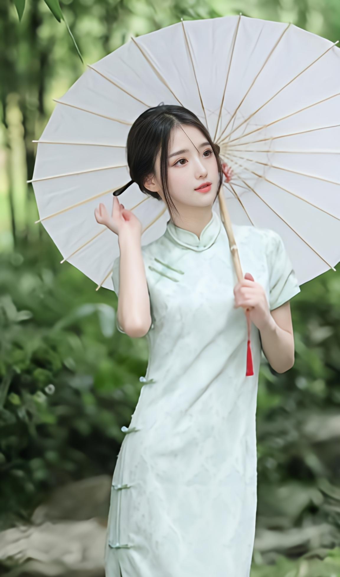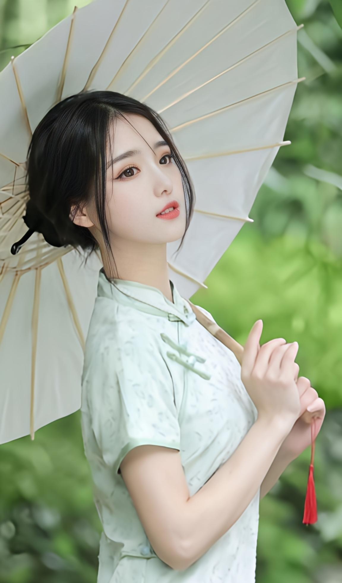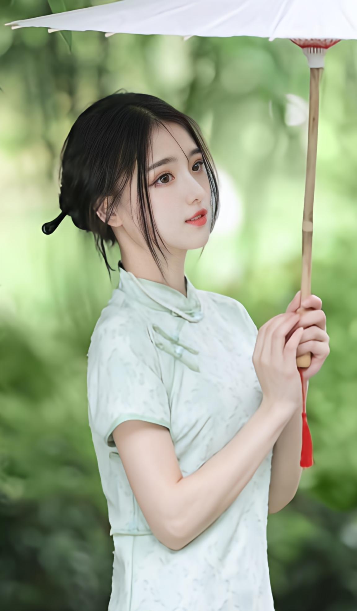 古典美人撑伞图,绿意盎然,清新脱俗古风