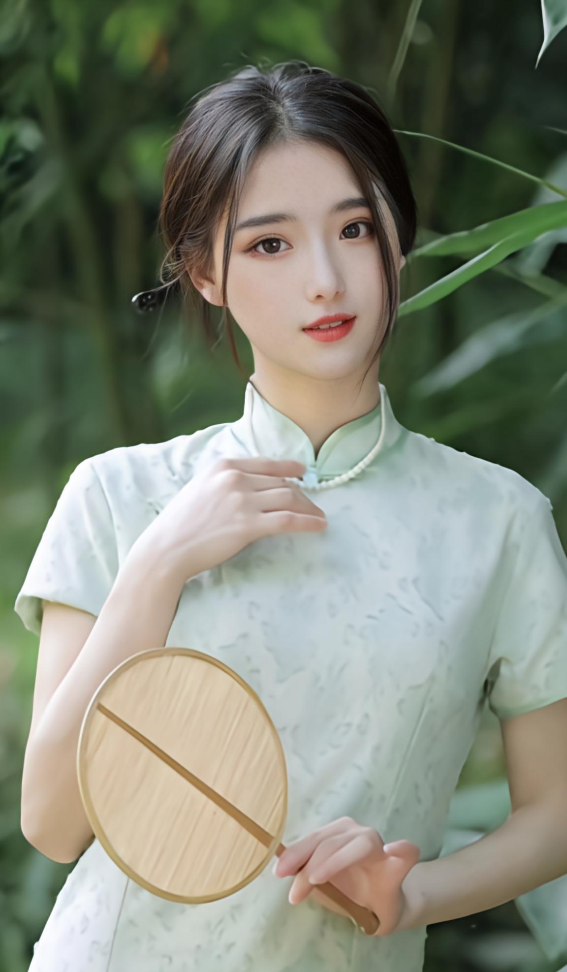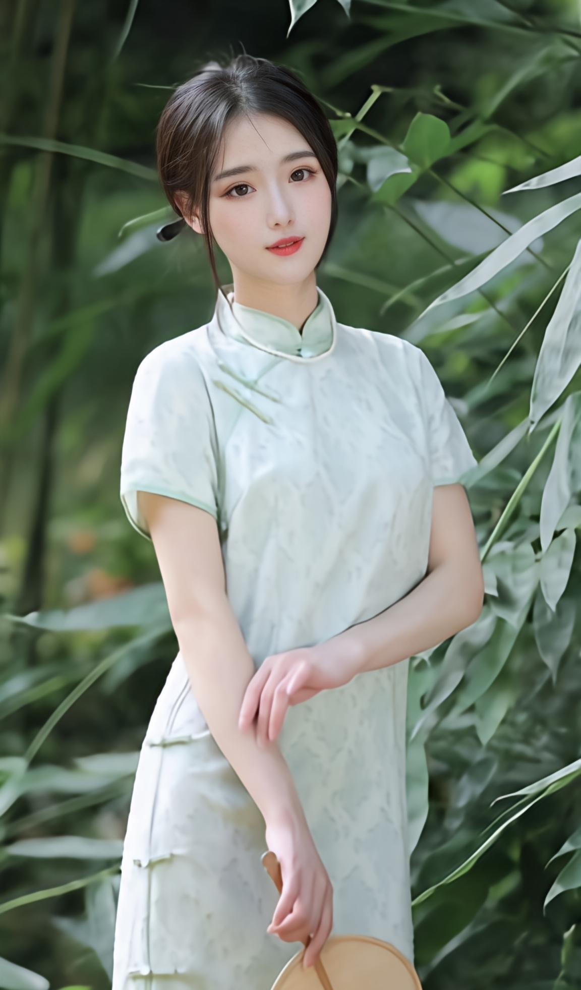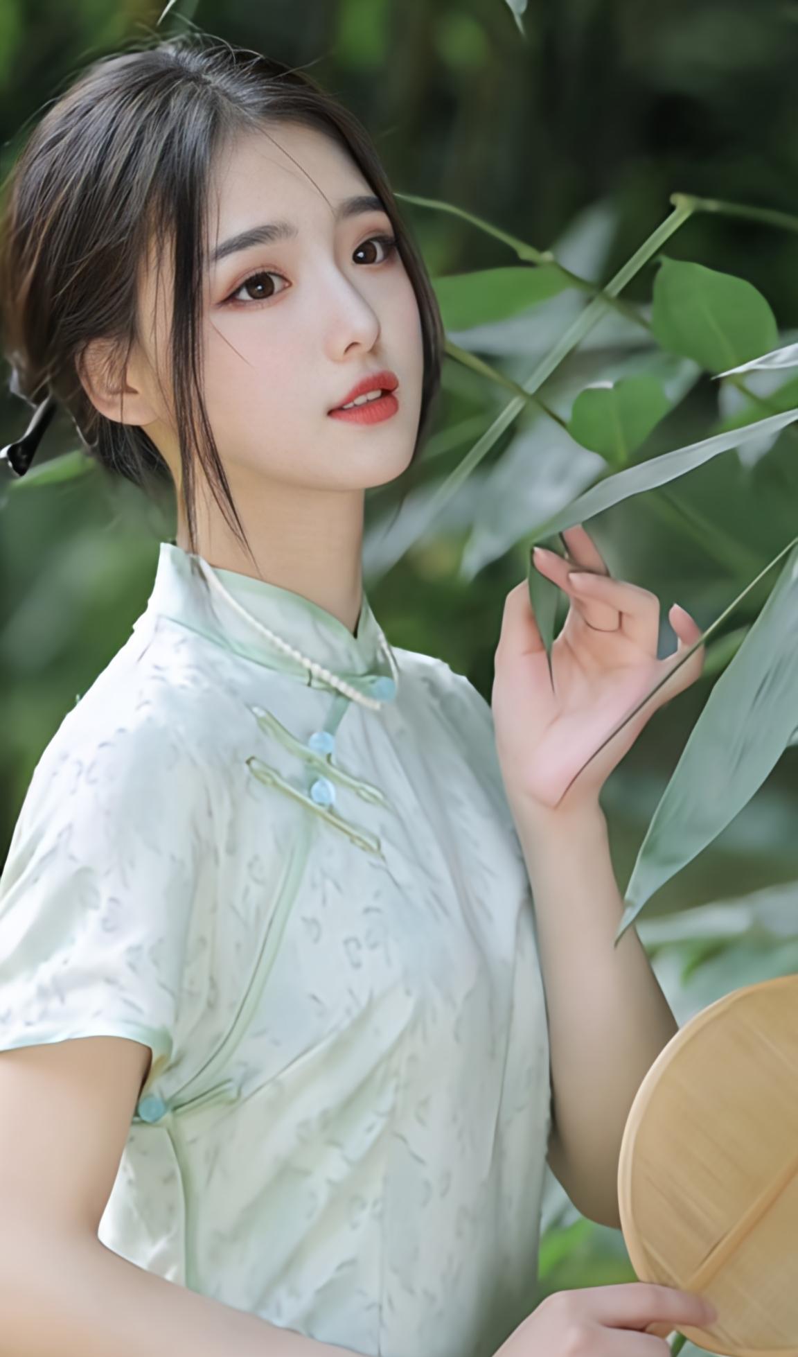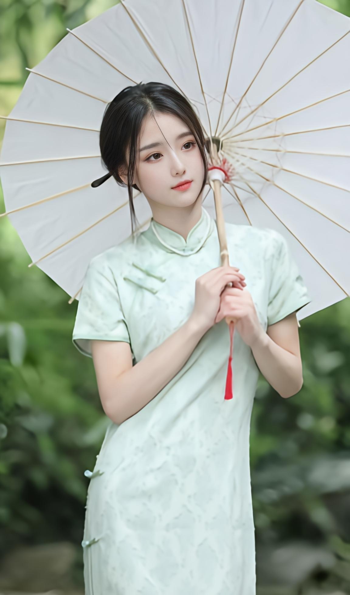 古典美人撑伞图,绿意盎然,清新脱俗古风