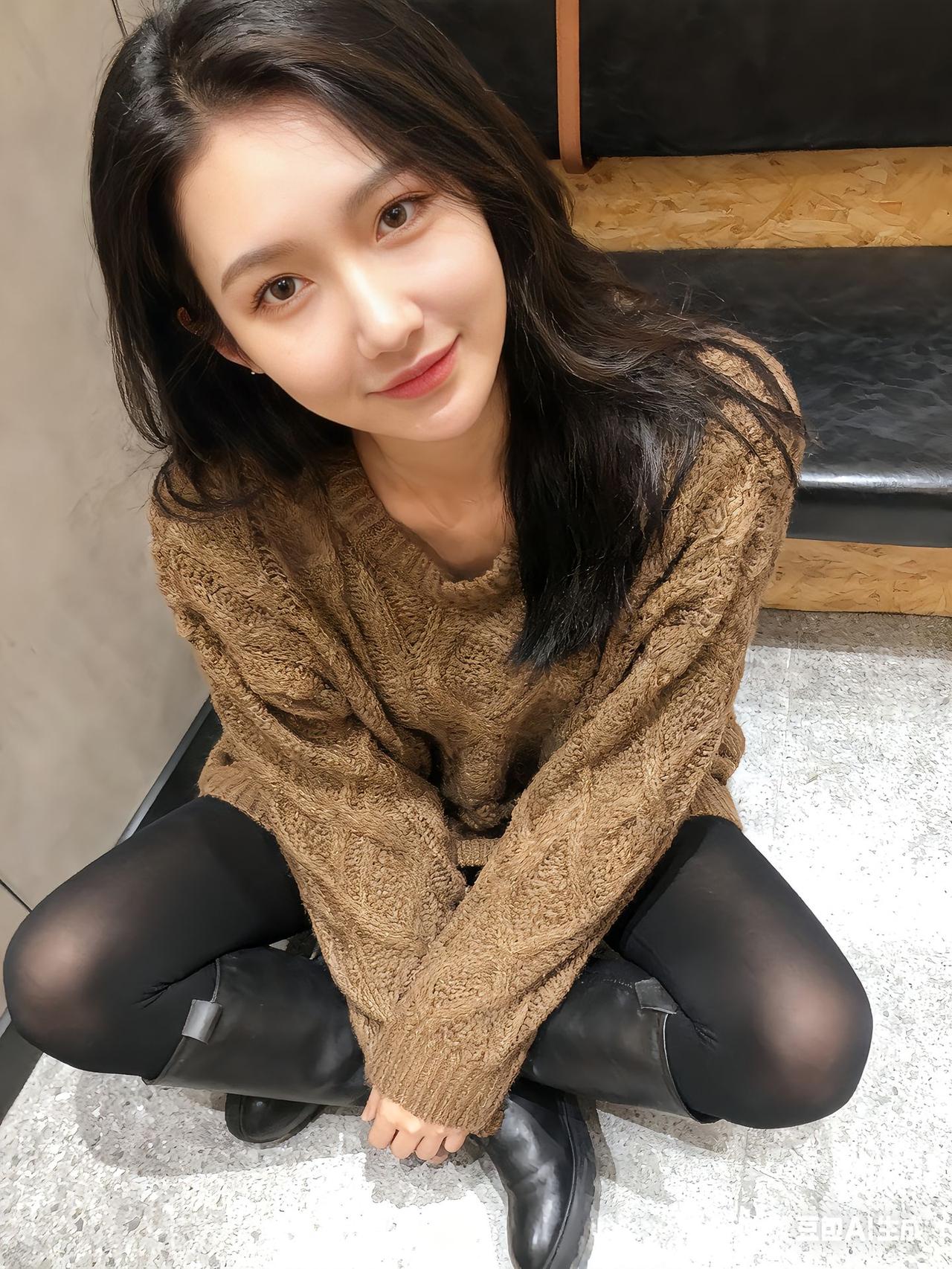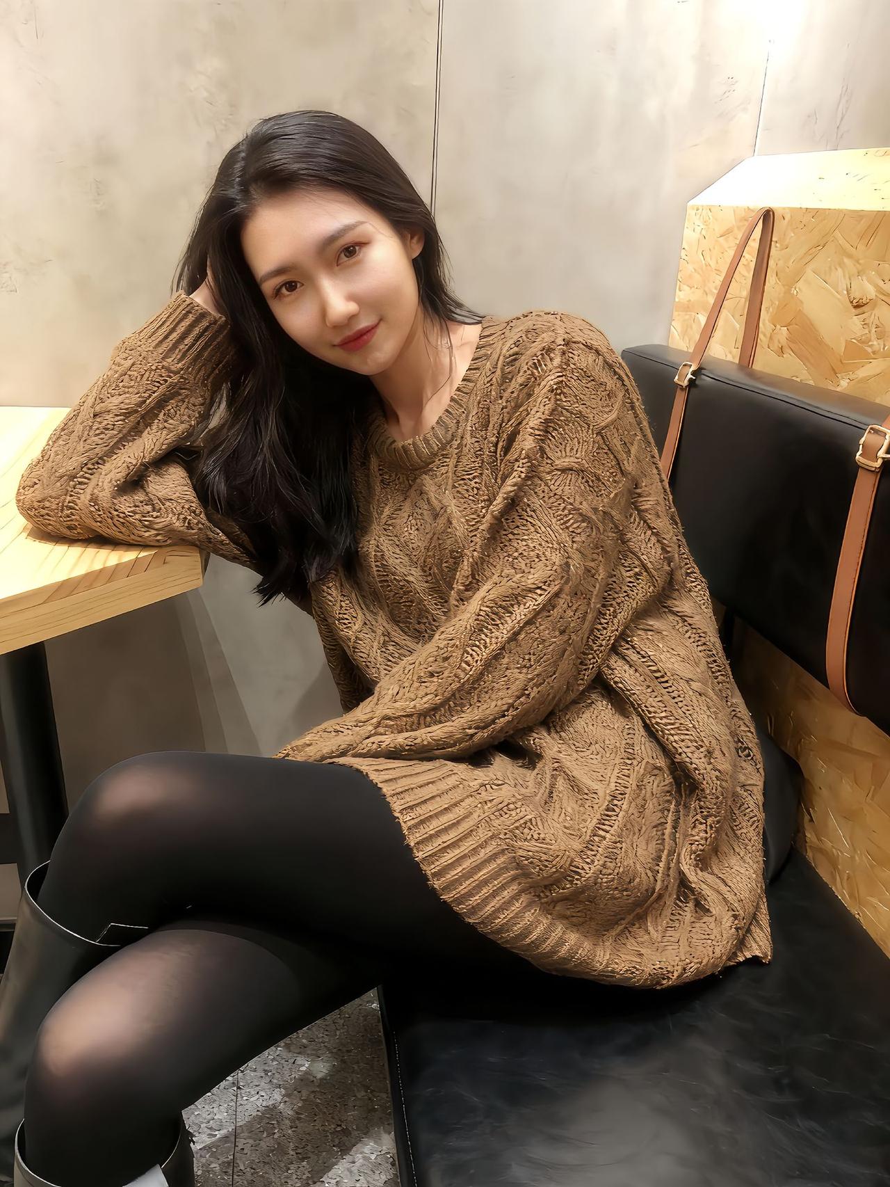 温暖秋日穿搭,棕色毛衣搭配黑色丝袜,简约又时尚!