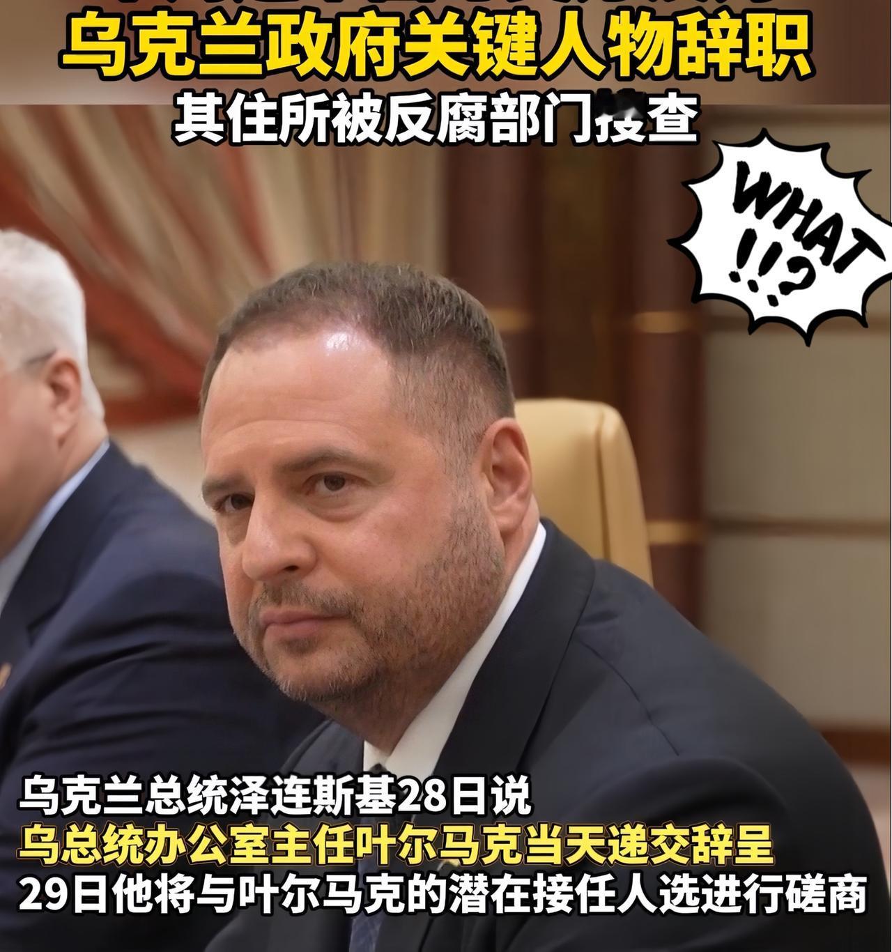 果不其然, 乌克兰政府关键人物辞职! 叶尔马克到底干不干净? 乌克兰总统泽连斯基28日宣布,乌克兰总统办公室谈判代表团团长叶尔马克已递交辞呈。叶尔马克辞呈的原因是当天乌克兰反腐部门官员抵达其住所进行搜查,随即拿走了叶尔马克的手机。 泽连斯基28日接受媒体采访时表示:“希望消除外界对乌克兰的质疑。”泽连斯基称,将对总统办公室进行重新组织架构,“我们会尽快找出适合的候选人。”叶尔马克将于29日与潜在接任者进行磋商。 叶尔马克54岁,是泽连斯基的密友,也是泽连斯基在2019年总统选举中最大助力之一。叶尔马克主导的谈判代表团,在与美国进行“和平计划”谈判中发挥了重要作用。 叶尔马克作为乌方“和平计划”谈判的关键主导者,其突然离职可能打乱乌克兰的外交谈判节奏。他深耕俄乌谈判进程多年,与美方及相关各方建立了稳定的沟通渠道,而新接任者需重新熟悉谈判细节、搭建沟通桥梁,短期内可能导致乌方谈判立场出现波动。 更值得关注的是,若新团队调整谈判策略,可能与泽连斯基此前推动的“全球和平峰会”议程产生衔接问题,进而影响乌克兰在俄乌冲突中的外交主动性。 据乌克兰媒体报道,叶尔马克没有被列为嫌疑人。但乌在野党议员和一些执政党成员呼吁泽连斯基解职叶尔马克。 网友称泽连斯基正面临与美国、俄罗斯的艰难谈判,多名政府高官相继卷入腐败丑闻,给泽连斯基带来更大压力。 这事儿看着是反腐,其实挺现实的!泽连斯基的铁哥们叶尔马克说辞就辞,还不是因为反腐搜查撞枪口上了,西方那边正盯着乌克兰的腐败问题要援助呢。 不过这么一换核心谈判的人,乌克兰跟美国谈和平计划不得断档?而且暂时换关键幕僚,内部权力会不会乱也不好说。只能说,反腐是该搞,但也得顾着稳定和事儿能推进,不然光摆姿态可解决不了实际问题! 【免责声明】素材、图片均来自网络,无不良引导,如有侵权请及时联系作者会主动删除。