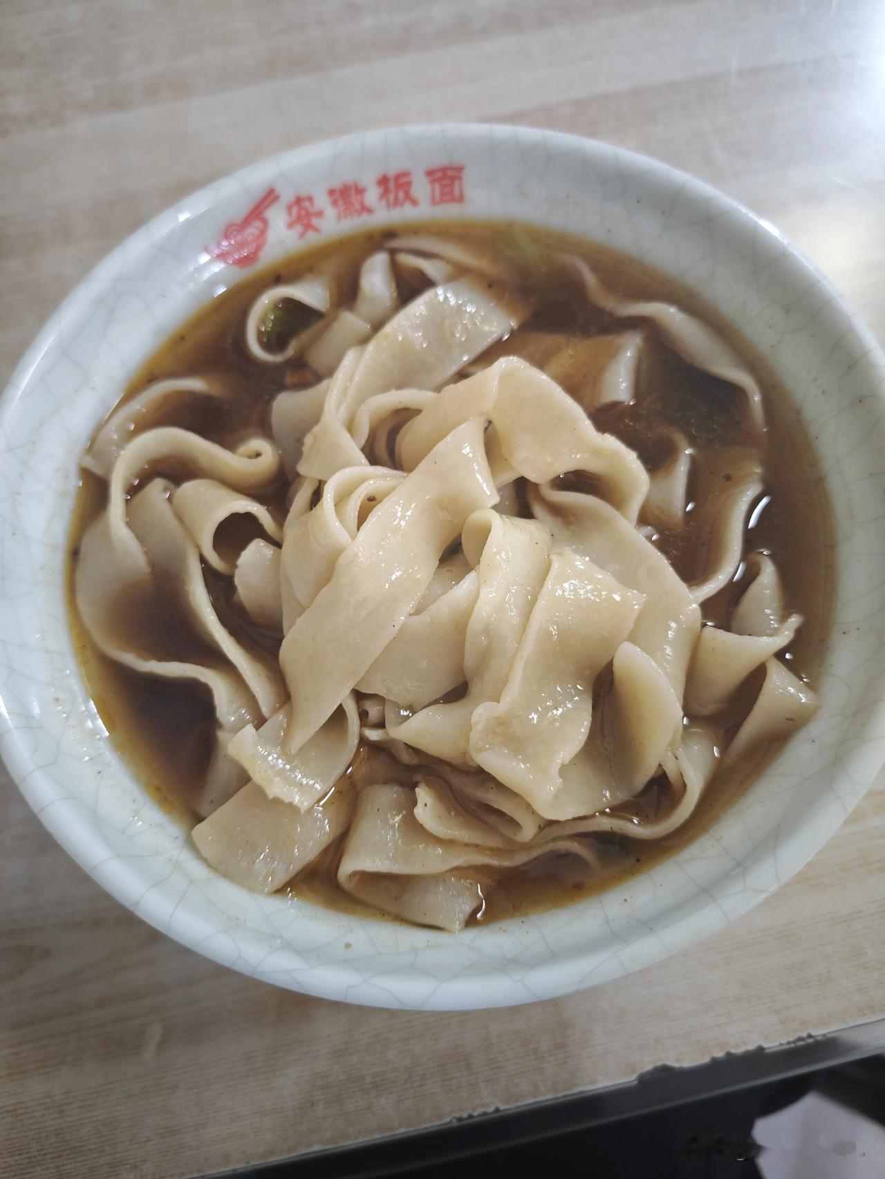 好久没吃板面了,记得上次吃,那都是很多年前。 那次吃的是河南板面,没把我辣死。我说不放辣,结果那辣劲还是我承受不了的。 今天吃的这个是安徽板面。这两个地方板面有什么不同呢?我也不知道,又不是经常吃,还真的分辨不出来。