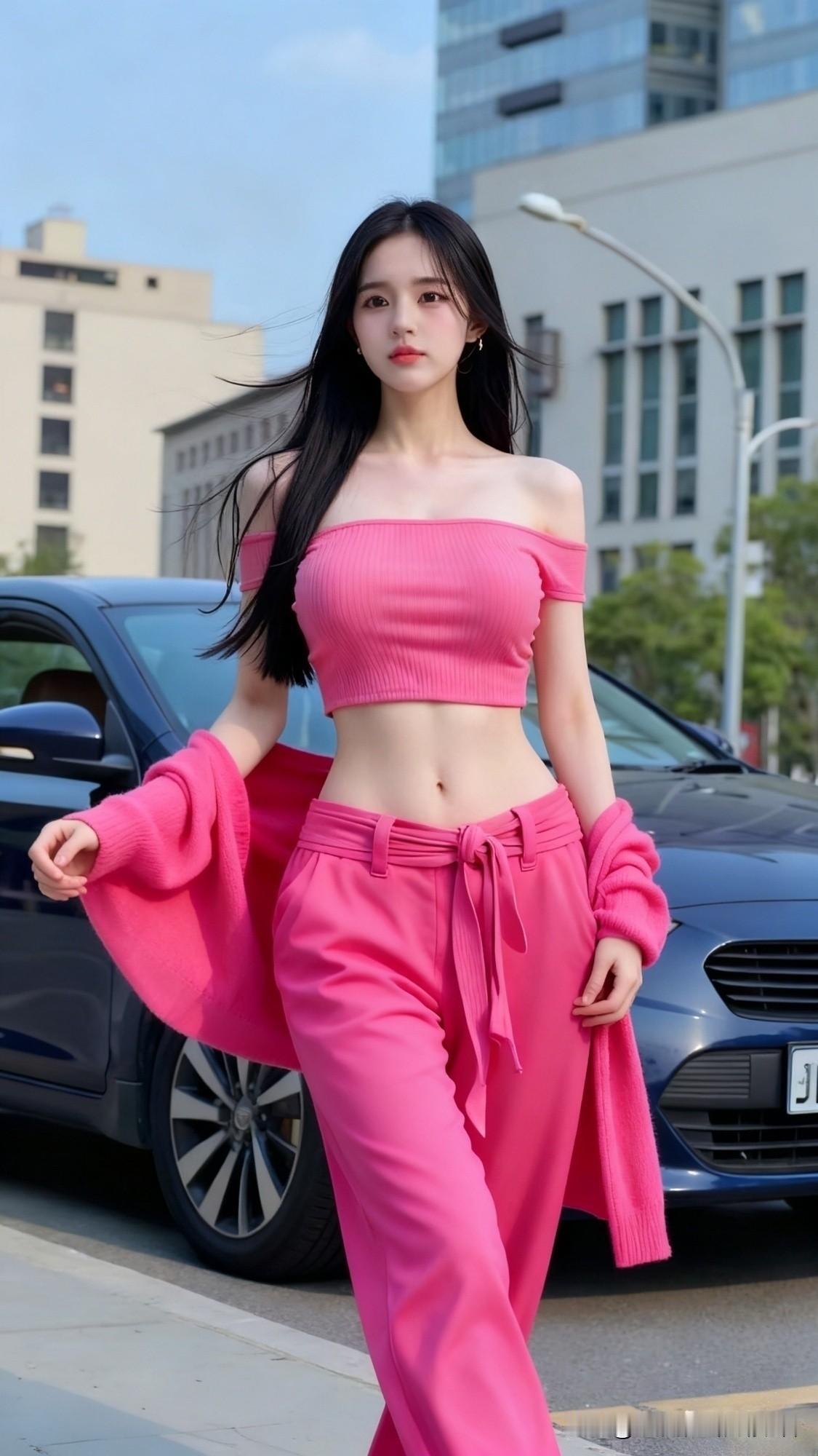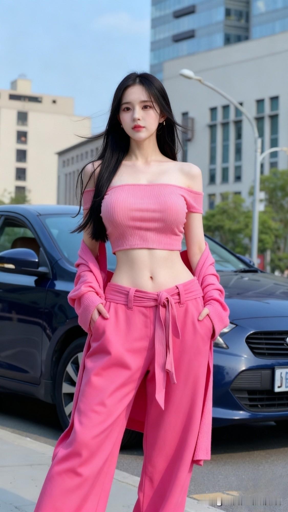 元气少女穿搭指南💗粉色露肩上衣+阔腿裤,元气满满!
