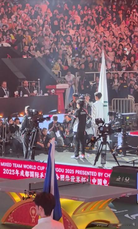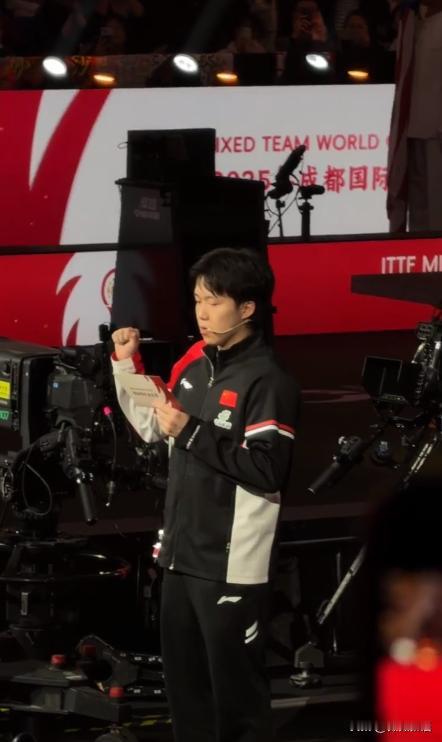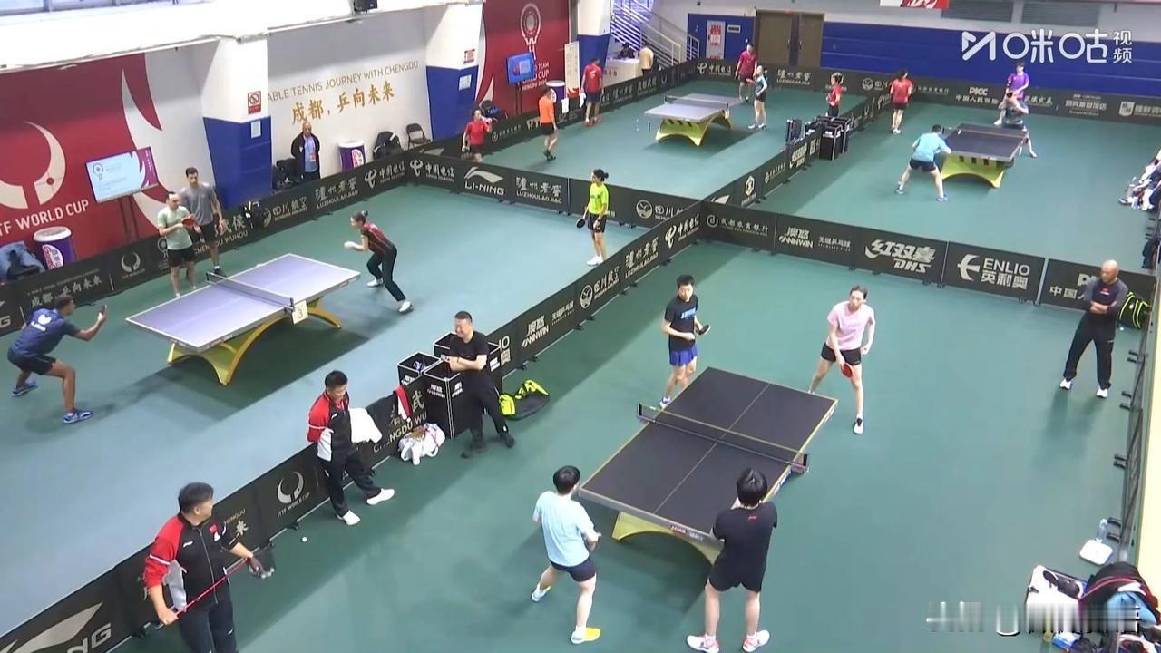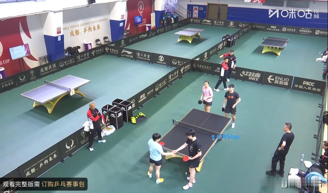 今天第一场混双是王楚钦孙颖莎出战。 上午看到咪咕有热身场的训练画面,一开始看到莎莎和楚钦的陪练是袁励岑/陈熠,十点半的时候出来了具体对阵表,港队今天第一盘混双是上黄镇廷/杜凯琹。王楚钦去宣誓回来后,和莎莎又练了一会儿,看到陪练换成薛飞和王晓彤了。大家说王楚钦去现场宣誓的时候,其他人都休息了,莎莎就那样席地而坐和马琳在那聊天了,马琳也坐在地上。 这是成都混团的首个比赛日,看到现在也是坐满了观众,看到其三个球台的球员都已经离场,中国队是最后离开的,即便是训练结束,楚钦和莎莎也要击掌。每一盘比赛都是打三局,今天蒯曼打第二盘女单,林诗栋打第三盘男单,第四盘男双是王楚钦/梁靖崑,不过如果前面三盘比赛中国队先拿到8分,后面的两盘双打就不用打了。 看到运动员们已经入场了,混团的比赛马上就要开始了,国乒加油哦!