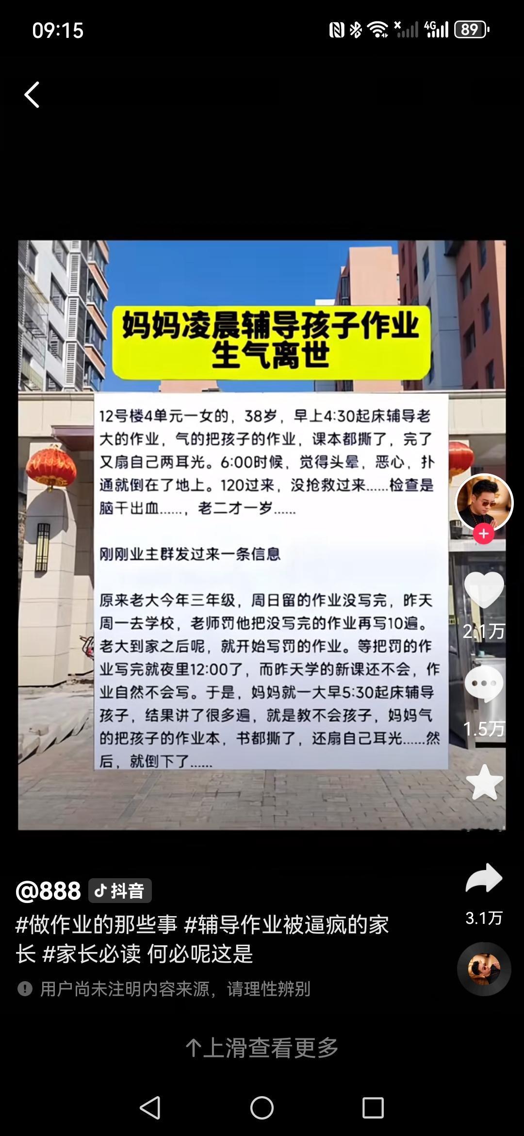 “不写作业母慈子孝”变急诊惊魂!家长的崩溃真不是矫情? 杭州萧山急诊室的一幕,让无数家长心头一紧:男子抱着呼吸急促的妻子冲进来,身后是哭红眼睛的一年级男孩——妈妈辅导作业时情绪崩溃,竟引发呼吸性碱中毒,双手呈鸡爪状痉挛 !你有没有过这种时刻?对着孩子满纸错题,血压瞬间飙升,话到嘴边就成了怒吼? “讲了8遍还不会,这么简单的题有这么难?”这句话藏着多少家长的无奈。调查显示超九成家长曾因辅导作业情绪崩溃,有人气到血压飙至240,有人直接失声两个月,这场“亲子战役”为何如此惨烈 ?是孩子太磨蹭,还是我们的期待压垮了耐心? 其实每个崩溃瞬间,都藏着“望子成龙”的执念。我们用成人的标准要求孩子,却忘了他们的大脑要到25岁才完全成熟,那些“低级错误”,不过是成长的必经之路。就像那位杭州妈妈,清醒后看着孩子的道歉纸条,瞬间红了眼——孩子不是故意作对,只是还没跟上我们的脚步,不是吗? 转机往往藏在换个角度里。有妈妈把作业变成闯关游戏,用番茄钟拆分任务,孩子效率翻倍;有家长建立“错题博物馆”,把错误变成进步阶梯。辅导作业的核心从不是“做对题”,而是陪孩子养成习惯。如果换成你,会选择怒吼还是换种方式沟通? 教育本是一场修行,孩子在成长,我们也在学习。当你下次忍不住要发火时,不妨先捏紧减压球默数12秒,告诉自己:我们培养的是未来的大人,不是满分的机器。你有没有过辅导作业的崩溃时刻?最后是怎么化解的?欢迎在评论区分享你的“续命妙招”~热点话题 写作业崩溃症
