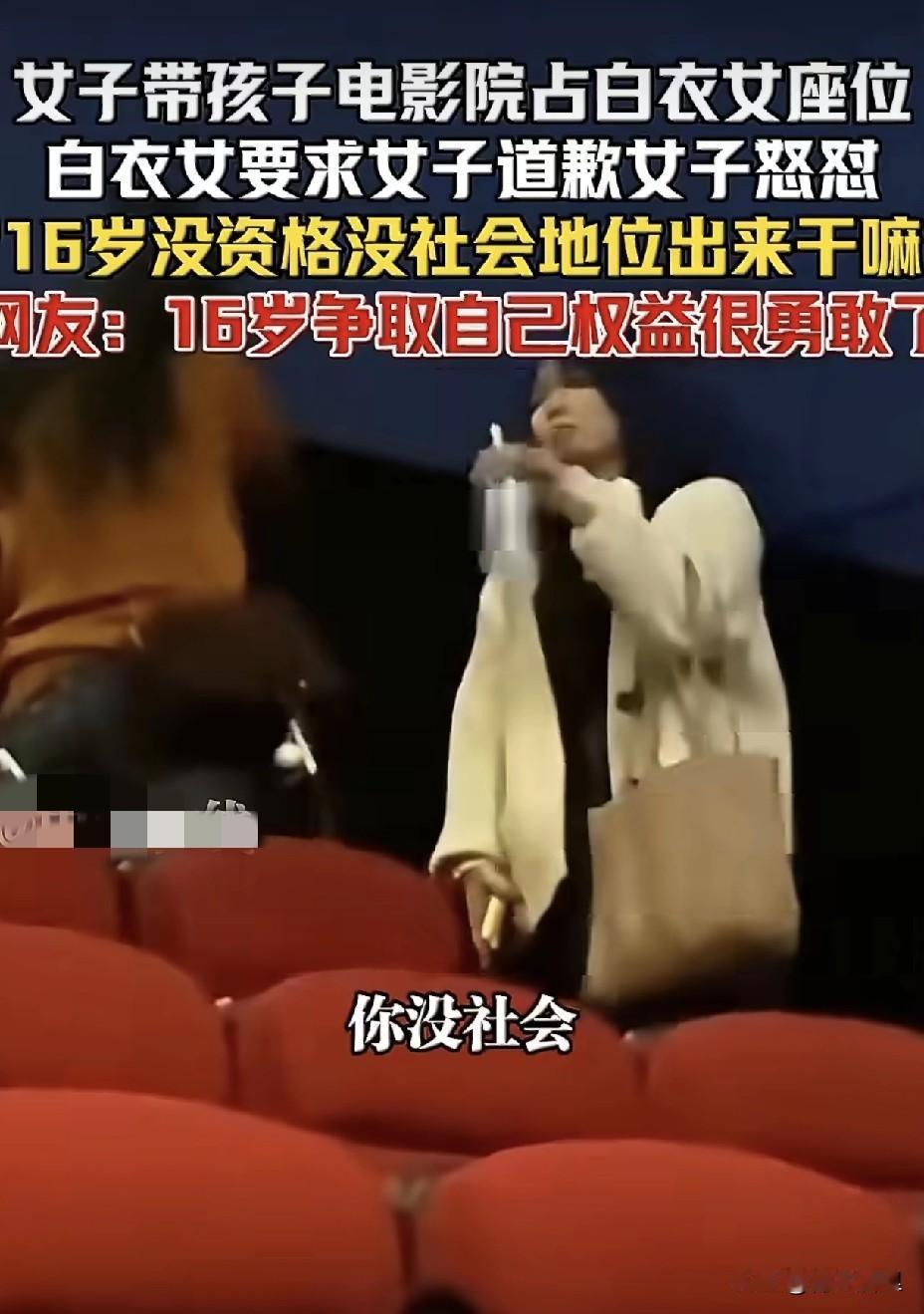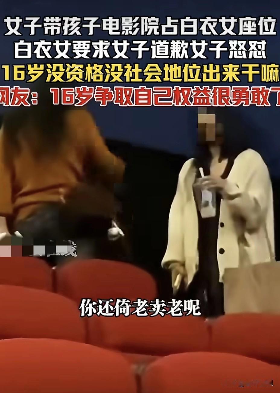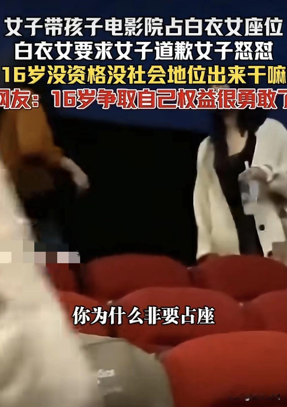 这年头谁不顾脸面谁有理。 一个妈妈带孩子看电影,为了能有最佳的观影体验,占了人家16岁小姑娘位置。小姑娘维护自己权益,要求让座时,不但不让,还理直气壮的怼人家脸上说:“16岁没资格,没社会地位”。 这位妈妈在耍无赖的时候,可能没意识到,自己的咄咄逼人的样子已经完全被女儿记在眼里。将来的某一天,恐怕她女儿也会有样学样。因为在她的记忆里,她的妈妈就是这样解决问题的。只要不顾脸面,就能达到目的。