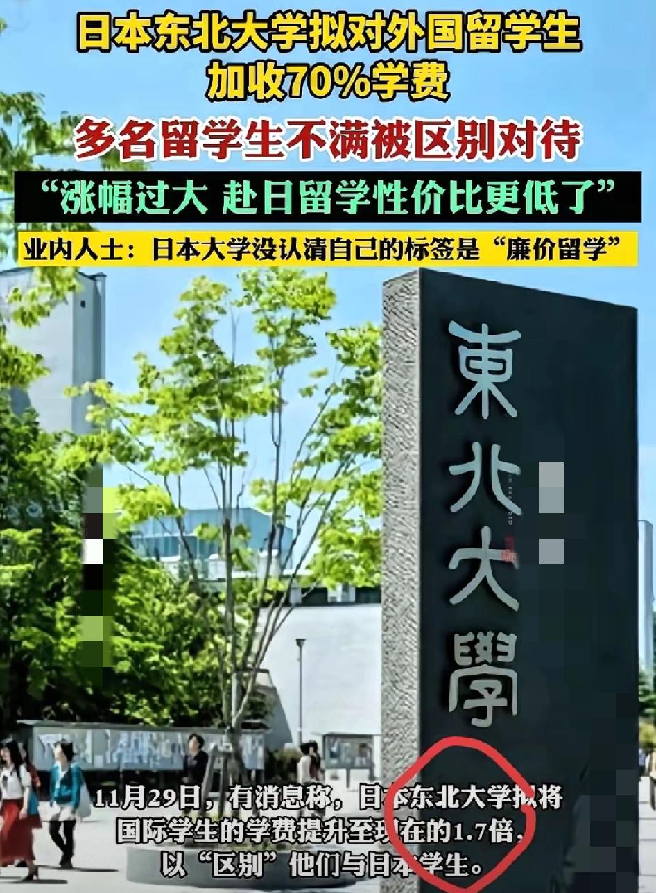 日本名校这波操作也太离谱了! 直接给留学生学费涨70%,本土学生一分不涨,每年多掏1.7万,用国籍划收费等级,这歧视味儿都快溢出屏幕了! 说白了这就是把留学生当“提款机”,之前日本留学的卖点就是性价比,现在连这点优势都没了。 更关键的是,现在中日关系紧张,教育部都发了留学预警,安全风险比钱的问题更让人揪心。 别觉得经济条件好就无所谓,这种差别对待本质就是不尊重,后续要是其他学校跟风涨价,日本留学的性价比直接归零。留学选的是安心和尊重,不是花钱买气受。 你觉得这波涨价是单纯创收,还是变相排外?要是你,还会让孩子选日本留学吗?日本留学 日本留学陷阱 东京日本留学 日本学校报名 海外大学学费 日本国际本科 日本留学费