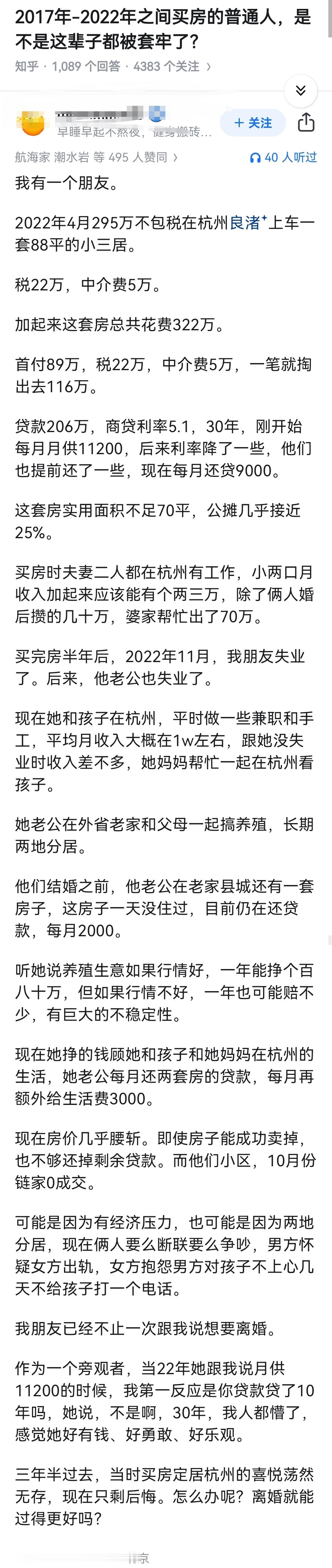 2017年-2022年之间买房的普通人,是不是这辈子都被套牢了?