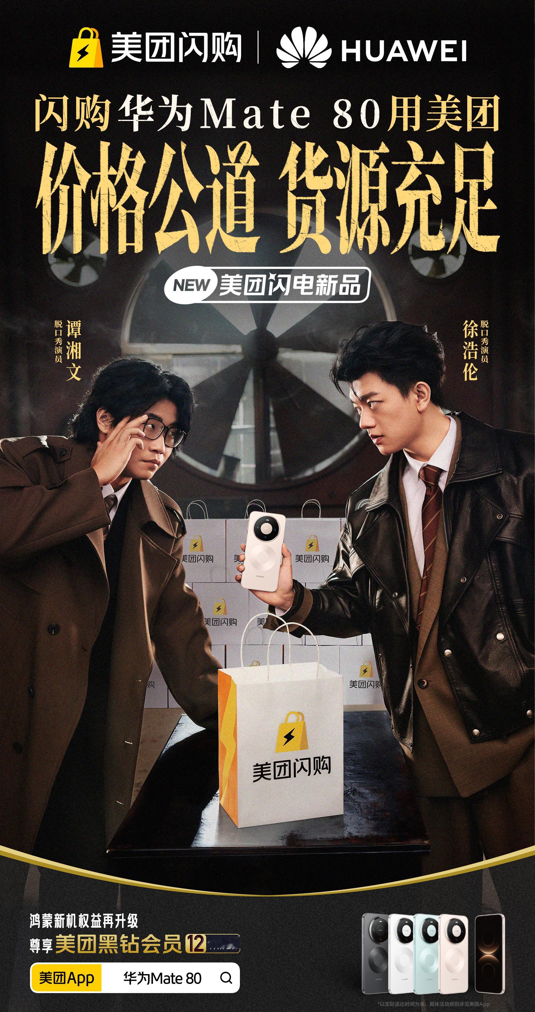 在家也能快速收到华为Mate 80了,这次美团闪购购机福利拉满,30分钟现货速达还直发不加价,下单就送12个月美团黑钻会员,宅家就能解锁新机!这次华为Mate80系列真的良心,不仅仅降价了而且还增配了,可以说诚意十足。首发HarmonyOS 6操作丝滑流畅,第二代红枫影像拍景拍人都真实能打,无网应急通信、户外探索模式等黑科技全配齐,标准版还标配3D TOF深感摄像头,高端体验不打折,入手绝对不亏~漫才兄弟改名了