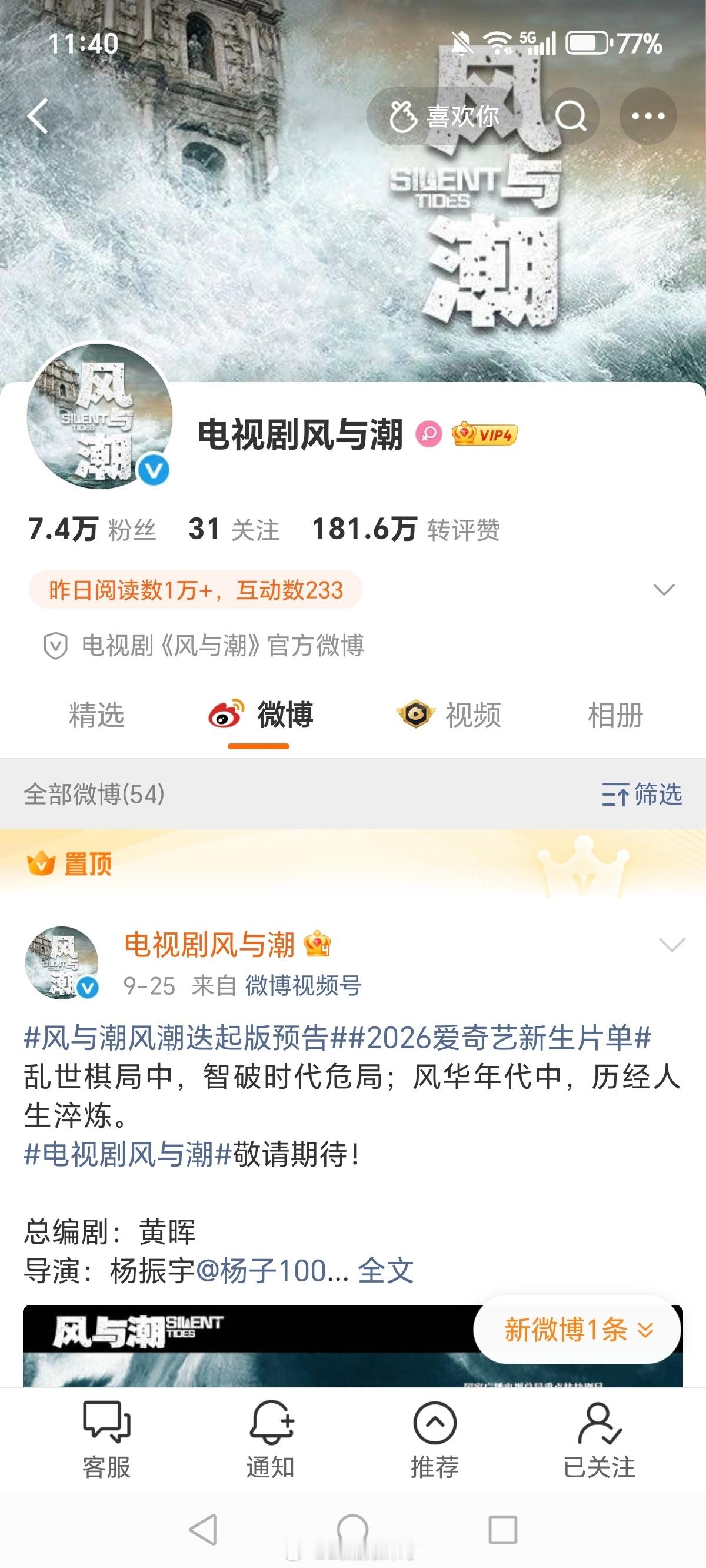 电视剧《风与潮》官博隐藏了2条已经开始激动了