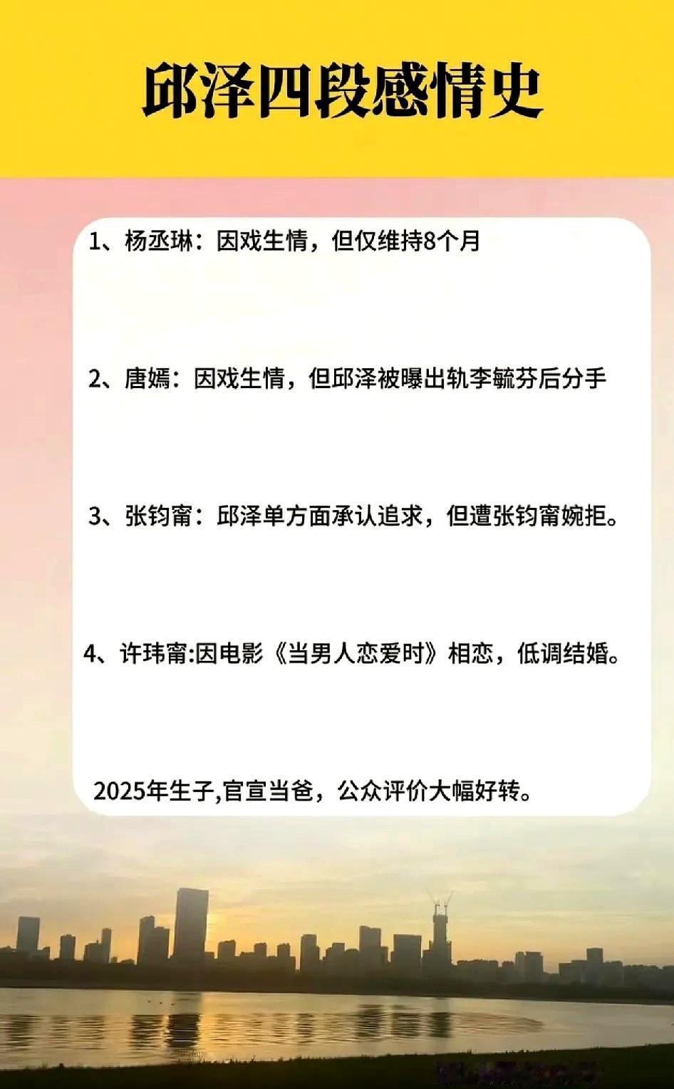 邱泽这形象逆转,还真是靠结婚生子啊。 想当年,2014年他和唐嫣分手那事闹得沸沸扬扬,“情场浪子”这帽子一戴就是好多年,事业都跟着受影响。 2021年跟许玮甯结婚后就低调多了。2025年7月儿子“lan”出生,他天天晒娃,一副好爸爸的样子。11月28号在台北文华东方酒店补办婚礼,他讲誓词都哽咽了。三月大的儿子也穿着小礼服来了,可爱。 婚礼一曝光,网上风向全变了。微博话题邱泽许玮甯补办婚礼阅读量直接破亿,评论区全是祝福。过去那些黑料好像没人记得了,大家大家就吃“好男人”这一套。 这就是娱乐圈的“婚姻滤镜”吧。只要组建了家庭,公众的宽容度就高很多。爱与责任,确实是最好的公关。
