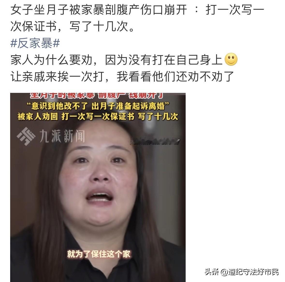 女子坐月子被家暴,剖腹产伤口崩开 打一次写一次保证书 上面每一个文字都认识,但是连起来读 让人觉得寒冷呢
