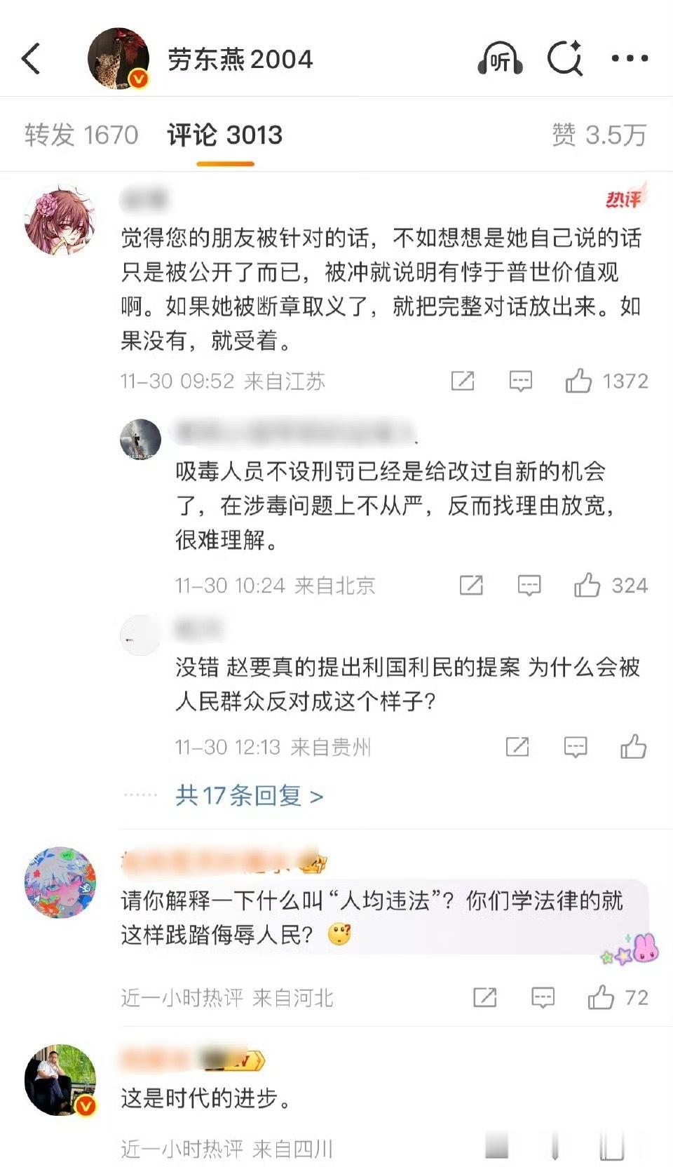 劳东燕为自己的朋友赵宏说话,把群众的意见说成是有组织的围攻。并且还提到治安处罚记录封存征求意见的时候收到了超10万条意见建议...10万条...那这最后结果?