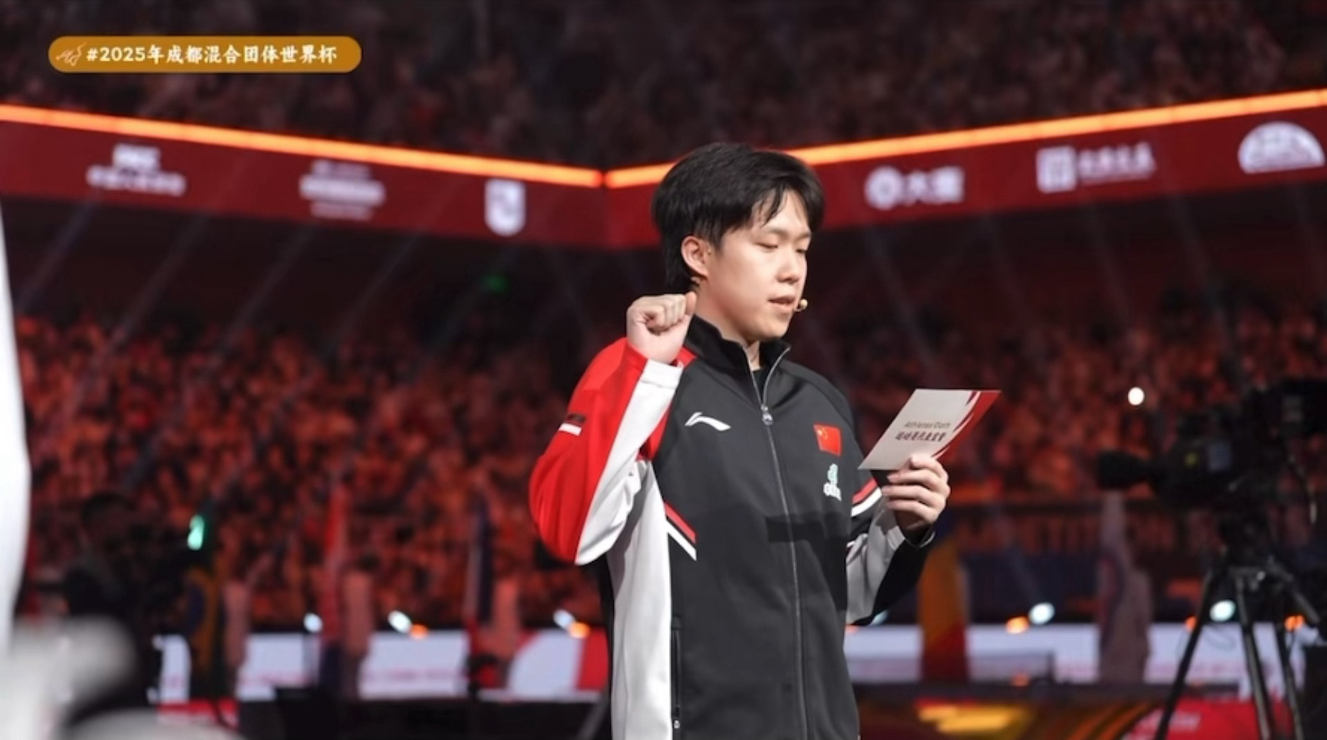 孙颖莎王楚钦回应混团入奥后首战混合团体世界杯抽签仪式现场,王楚钦、孙颖莎接受采