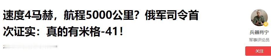 全球首架4马赫战机要来了?上打卫星下攻航母,导弹都追不上它。   4马赫的速度可不是闹着玩的,换算下来一小时能飞4900多公里,从北京飞到纽约也就2小时,比咱常见的民航客机快5倍还多,这种速度优势甚至能直接改写现代空战规则。 早在上世纪80年代,美军威尔伯特・皮尔逊少校开着F-15A干过一票大事——在11公里高空发射ASM-135反卫星导弹,把555公里外的在轨卫星干下来了。 但那架F-15A撑死了也就2.5马赫的速度,发射导弹前还得玩命陡峭爬升攒动能,跟个蓄力的运动员似的,少一步都不行。 可4马赫战机压根不用这套繁琐操作,本身的速度和高度就自带初始动能,别说打500多公里的卫星,就连俄罗斯正在捣鼓的米格-41,直接把4马赫当成设计指标,还扬言能怼500公里以下的低轨卫星,你看,这可不是拍科幻片,是有实打实的技术参照的。 就说攻航母,现在的航母战斗群看着唬人,靠舰载机和防空导弹搭起层层防御,但架不住速度上的代差。目前主流的舰载机,比如美军的F-35C,最大速度也就1.6马赫,咱的歼-15T撑死了2马赫出头,就算是专门打飞机的防空导弹,多数也就3到4马赫的速度,还得走固定弹道。 4马赫的战机过来,先不说能不能被发现,就算发现了,留给航母防空系统反应的时间连零头都不到,导弹刚点火,战机早窜出老远了,更别说战机还能机动,导弹想追?纯属白费力气。 这就好比俩人格斗,一个出拳快到肉眼看不清,另一个还在慢悠悠摆架势,输赢从一开始就定了。 别觉得4马赫战机是突然冒出来的“科幻玩具”,它的背后是材料、发动机技术几十年的磨洋工。 上世纪80年代那会儿,战机想突破3马赫都难,机身和大气摩擦能烧到几百摄氏度,普通材料根本扛不住,现在不一样了,钛合金复合材料、主动冷却系统都玩得溜,发动机的推力和耐热性也早不是一个量级。 就拿俄罗斯的米格-41来说,虽然它能不能按时落地还不好说,但人家敢把4到4.3马赫写进设计指标,就说明这技术门槛已经能跨过去了,不是光靠嘴吹。 那些还在纠结“造这玩意儿有没有必要”的人,属实是没摸透高超音速时代的门道。现代空战拼的就是谁快、谁能先出手,速度慢的一方,别说还手,连看清对手在哪的机会都没有。 以前2.5马赫的F-15就能干反卫星的活儿,现在把速度提至4马赫,不管是反卫星还是突防航母,都是水到渠成的事儿。 毕竟在绝对的速度优势面前,所有花里胡哨的防御体系,都得先问问自己能不能跟上节奏——等你反应过来,4马赫的战机早完成任务溜之大吉了,这就是为啥说它不是空想,而是技术升级的必然结果。
