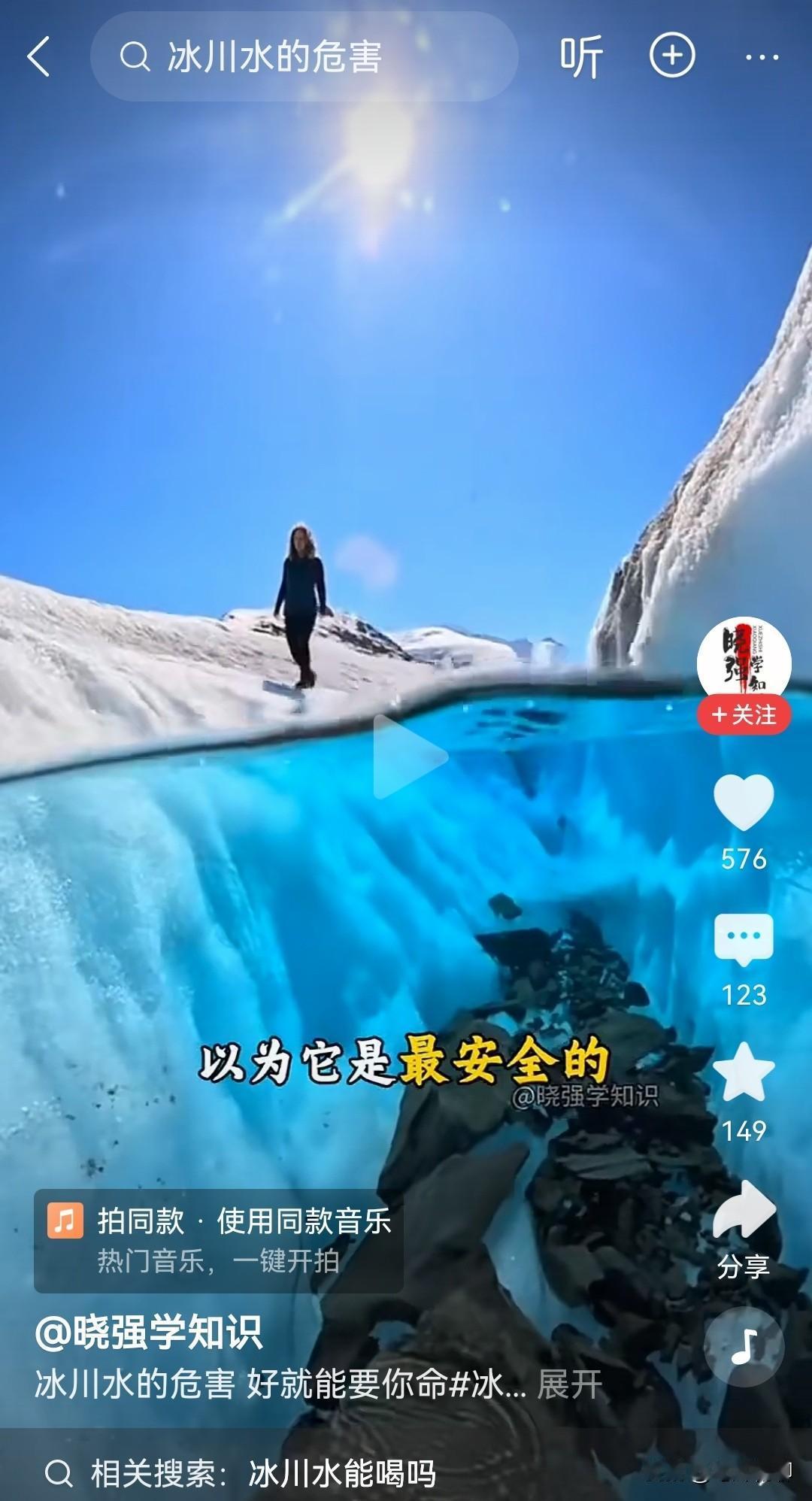 当看到南极洲这样清澈的冰川水,你敢直接饮用吗?或许有人会说,南极洲没有工业污染,冰川纯净无瑕,这深不见底的水看着就想喝上一口。 事实上,还真有人试过,但喝过的人早已被送进了医院ICU,这绝非玩笑!可别小瞧这冰川水,看似干净,实则暗藏风险。它里面可能含有沉睡数千年的古老细菌与寄生虫,它们是人类从未接触过的未知威胁。冰川 极地冰川 全球冰川 南极冰川危机 西藏高原冰川水 天然冰川水 阿拉斯加冰川水