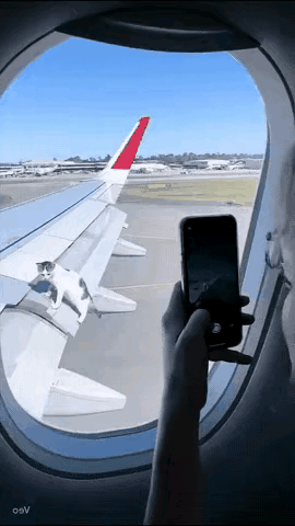 这不是AI,这是一名坐飞机的乘客拍下的真实视频。飞机正在缓缓滑行,准备飞入天际。机翅上却出现了一只猫咪,它一定是在飞机停止的时候爬上去的。地勤人员也太大意了,不知道对飞机有没有影响?猫咪是不是还能活命?