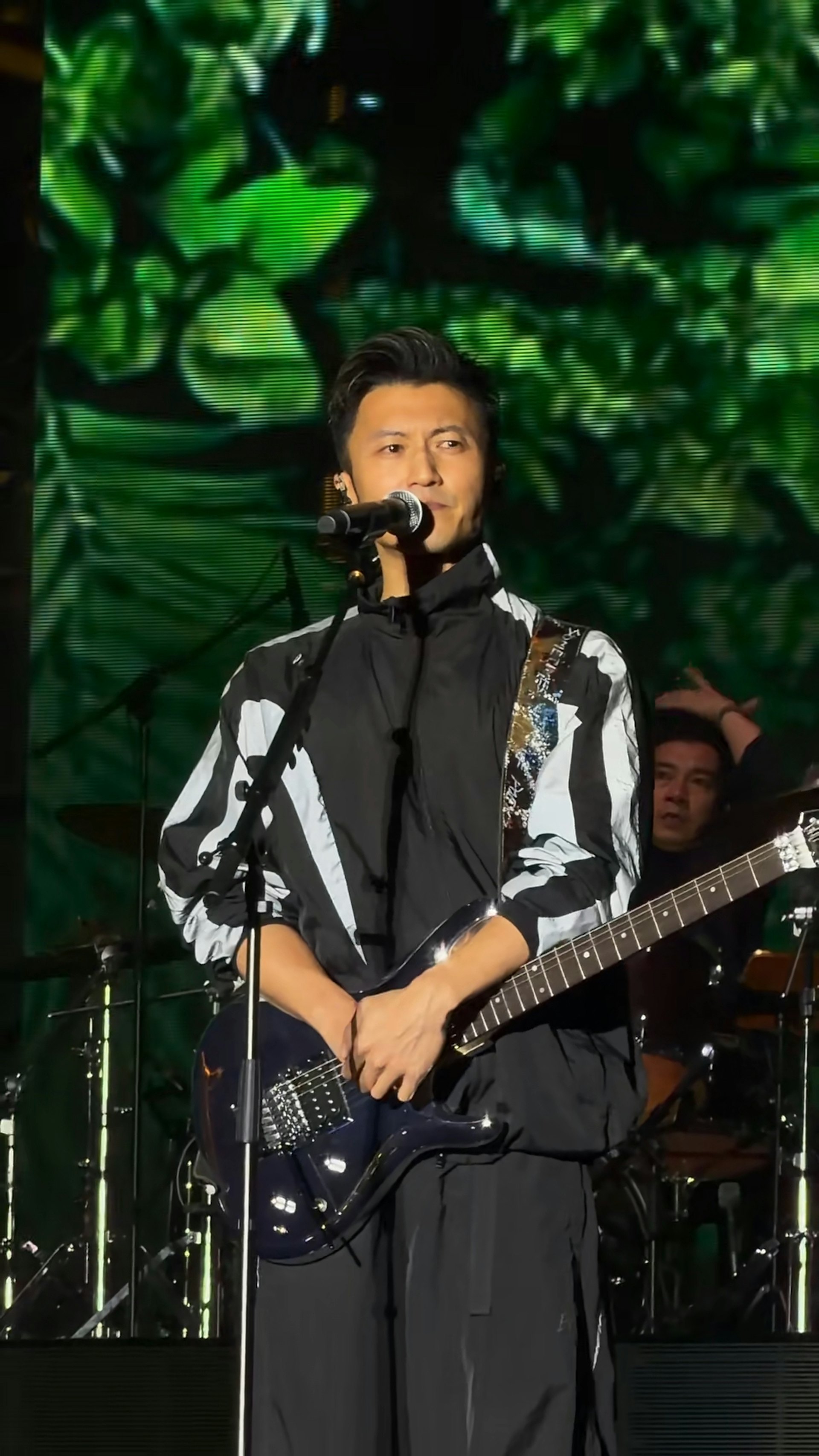 在昨晚的演出中,谢霆锋身着一身全黑服饰,手持深色吉他登场。他先是感谢大家专程来到