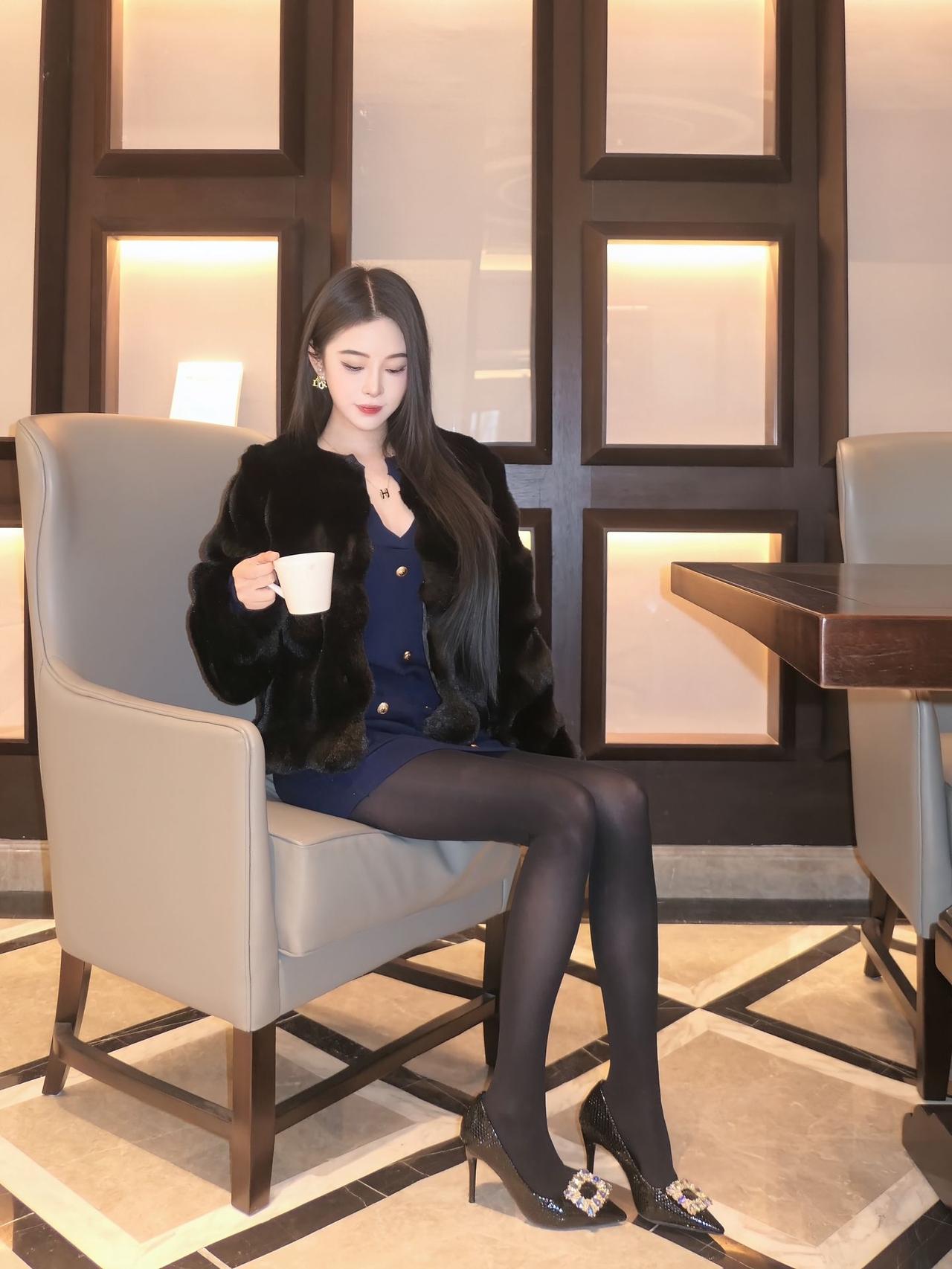 深蓝色针织连衣裙自带温柔滤镜,V领+收腰设计勾勒曲线,双排金扣点缀让简约不单调;外搭短款毛绒外套,软糯质感中和了裙装的轻熟,贵气又不张扬。搭配黑丝+水钻高跟鞋,精致细节瞬间拉满氛围感,再叠戴简约项链和耳饰,低调显贵不浮夸。 这套搭配的精髓在于“简约不简单”:用基础色系保证高级感,靠质感面料提升档次,小面积配饰提亮造型。不用堆砌元素,松弛舒展的状态+适配场合的精致感,就是气质女神的核心密码。什么样的穿搭可以成为气质女神?