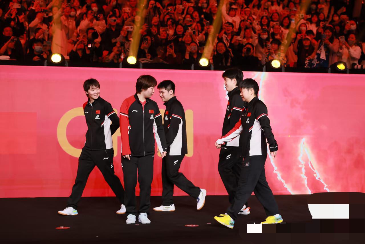 成都混团世界杯 国乒每个人的表情都很可爱——赛场内外和谐大家庭啊 11月30日, 成都混团世界杯开赛首日, 国乒队员入场时, 孙颖莎 王楚钦 王曼昱 蒯曼 林诗栋 表情轻松活泼, 再现国乒和谐盛世景象, 如果不出意外, 这五个人就是洛杉矶奥运会的阵容, 孙颖莎/王楚钦混双, 王曼昱/蒯曼女双, 目前就看男队第三人是谁啦! 六个人就齐了, 从洛杉矶奥运会的赛程来看, 没有办法兼四, 但每个人都要兼三, 单打,双打(混双),团体, 男队肯定要有第三人, 只是梁靖崑有伤和年龄问题, 剩下的小将都不稳定, 期待男队第三人!