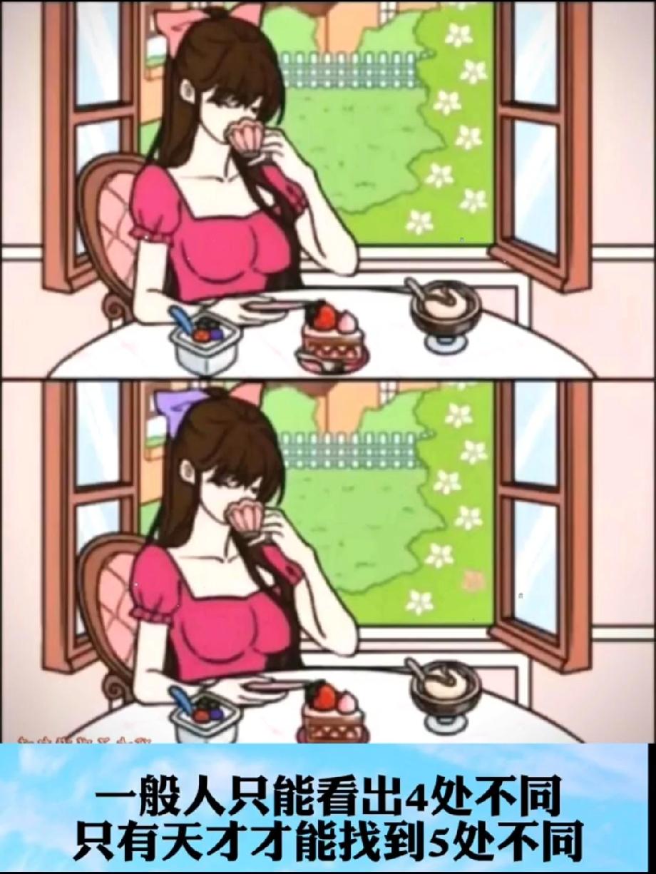 谁能找到这5处不同?女生吃饭的细节差,我找了5分钟才发现3处,评论区等大神揭秘!