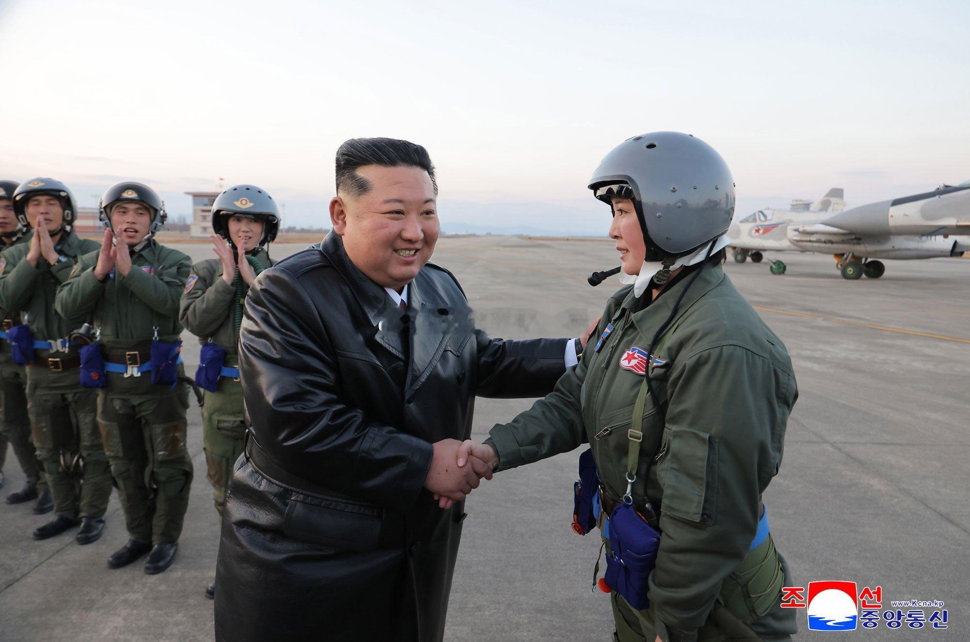 11月28日,朝鲜举行人民军空军成立80周年纪念活动。金正恩携女儿金主爱一同出席,并与女飞行员握手鼓励。苏-25挂载了一款新型隐身巡航导弹,可能是朝鲜版“金牛座”空射巡航导弹,也可能是反跑道集束巡航导弹。
