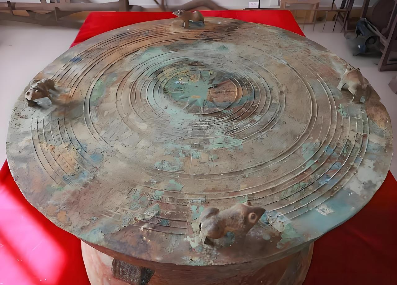 钓鱼佬立大功!家住柳州市柳城县大埔镇南村的杨建球,是位钓鱼爱好者。 11月20日,他在小河边挖钓鱼用的蚯蚓,结果挖到了一个坚硬的物品,刨出来以后发现居然竟是面铜鼓。 杨建球觉得这可能是个文物,于是就上报了有关部门。 11月23日,柳城县博物馆的馆长将此鼓运回了馆中,并给杨建秋颁发了证书。 这面铜鼓高44cm,鼓面直径69cm,中心装饰着精美的太阳纹,18个运圈环绕,鼓边还铸有4只青蛙,整体重量59斤。 经初步鉴定,这鼓可能铸造于汉代至唐代,虽历经千年,但敲击鼓面时,声音依旧清脆悦耳。 目前,柳城县已上报自治区,对此鼓进行详细的鉴定,待鉴定结果出来后,这面铜鼓的故事将会逐步的揭晓。 杨建秋估计做梦都不会梦到,自己竟能挖出个千年前的文物。 不过,相比于这份幸运,更难能可贵的是,他发现铜鼓后没有私藏和倒卖,而是选择了上报。 这种文物保护意识,值得我们为他点赞!