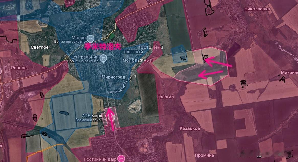 红军村包围圈,瓮中的季米特洛夫快没了。俄罗斯媒体称,该城南部的田野,之前面积非常大的,由于乌军大规模不战而降,基本快丢掉。俄军已从南部靠近季米特洛夫,其东部和东北部也被快速地分割包围。 在城区也出现了大规模投降,俄媒称,其城区一半已被俄军控制。这个包围圈很难长期坚持,里面的乌军没有吃食,也没有电力过的很艰难。 有消息说,乌军俘虏组建的马克西姆营就在红军村方向作战,他们的动员宣传作用非常大。