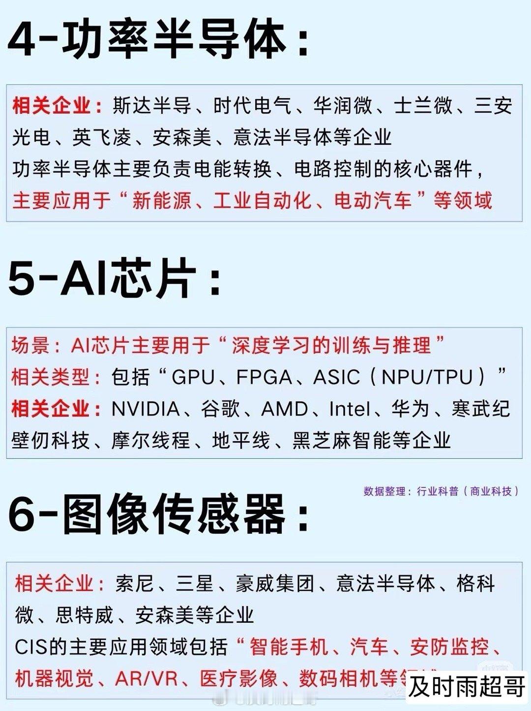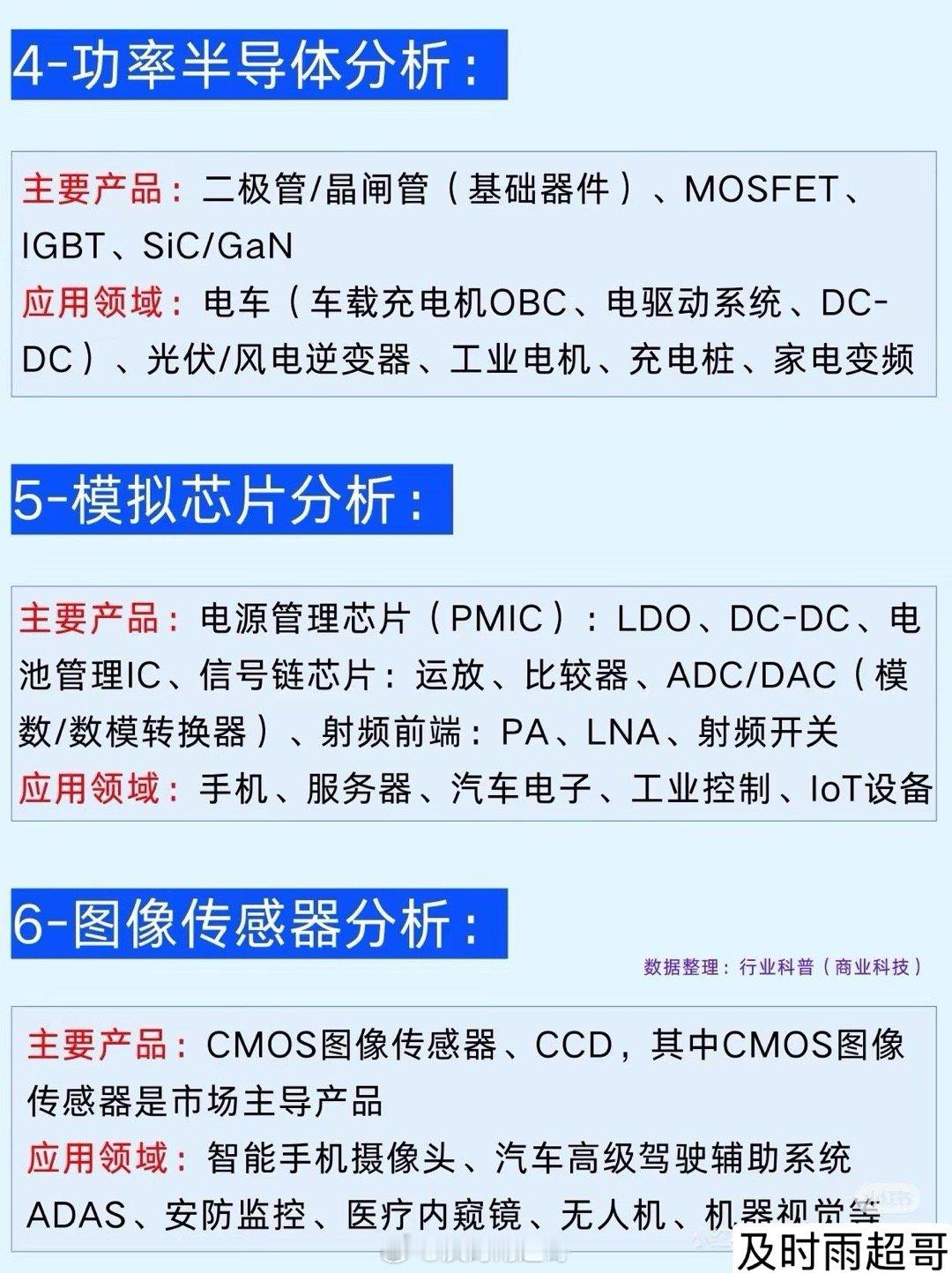 一篇吃透:六大热门芯片行业及龙头企业本篇六大芯片行业分别是:[一R]、存储芯片及企业[二R]、CPU芯片及企业[三R]、模拟芯片及企业[四R]、功率半导体及相关企业[五R]、AI芯片及相关企业[六R]、图像传感器及相关企业–图一:介绍存储、CPU、模拟芯片及企业-图二:介绍功率半导体、AI芯片、图像传感器及相关企业–图三:存储芯片市场规模及产品类别分析–图四:AI芯片主流企业分类及相关产业链–图五:CPU芯片技术架构及应用场景-图六:功率半导体、模拟芯片、图像传感器三大领域相关产品及应用场景