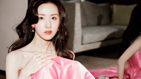 陈都灵粉色流光抹胸长裙,粉嘟嘟的,得劲不?