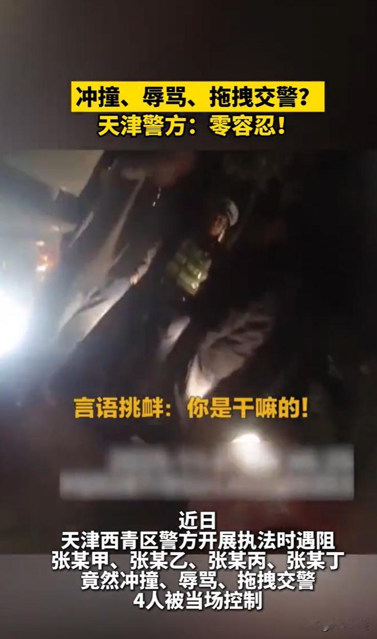 天津,一辆超载货车被交警拦下检查,司机正要配合时,工地负责人张某甲带着三名同伴气势汹汹地赶来。张某乙率先发难,朝着交警怒吼道:“小崽子,我骂你行么?”……污 言 秽语不绝于耳。见交警始终保持克制,张某乙竟挑衅道:“敢把 警 服脱了吗?脱下来废 了你!” 混乱中,张某丙用身体冲撞辅 警,张某丁趁机推搡帽子叔叔。冲突瞬间升级,张某甲突然从背后抱住帽子叔叔,猛力将其往路边草丛拖 拽,警服在撕扯中歪斜。但,帽子叔叔始终克制,直到支援警力赶到控制全场。最终,张某甲等人被抓,但处罚结果引发网友热议。 2025年11月的一个寒冷午后,接到群众举报,有一辆涉嫌超载的重型卡车正驶入某偏僻工地区域。 交警立即出动,身着醒目的警服,佩戴执法记录仪,神情严肃地抵达举报地点,锁定了那辆可疑卡车。 初步检查显示,涉案车辆确实存在超载嫌疑,交警随即依法示意司机停车接受进一步调查。司机是一名中年男子,面露紧张,但还算配合地停下了车。 然而,就在交警准备记录信息时,远处突然传来急促的脚步声和嘈杂的呼喊声,四名男子从附近的工地快步赶来,他们分别是张某甲、张某乙、张某丙和张某丁。 这四人是该工地的负责人,平时负责调度车辆和物料,听说警方拦截了他们的卡车,立刻情绪激动地冲了过来。 张某甲走在最前面,他身材魁梧,脸上带着不耐烦的表情;张某乙紧随其后,嘴里嘟囔着什么;张某丙和张某丁则左右簇拥,目光警惕。 交警见状,立即提高警惕,礼貌地告知他们正在执行公务,要求他们保持距离,但张某甲等人似乎不以为然,张某乙率先开口,语气很冲:“怎么回事?这是我们工地的车!” 交警耐心解释:“这辆车涉嫌超载,我们需要依法检查。” 然而,张某乙的情绪逐渐失控,他指着交警破口大骂:“你就不是人X的!你他妈的就不是你X养的!”等污 言秽语。 现场气氛瞬间紧张起来,但交警始终保持冷静,一名帽子叔叔严肃警告道:“你把手放下,好好说话。” 张某乙不仅没有收敛,反而变本加厉,挑衅地喊道:“你敢把衣服脱了吗?”接着,他又叫嚣道:“吹牛!脱下来废了你今儿!” 交警面对如此辱 骂,依然坚守职业操守,没有以牙还牙,而是反复警告对方保持冷静,配合执 法。 接着,张某丙突然站了出来,用身体直接冲撞一名辅警,并高声叫嚷,试图阻碍交警靠近卡车。 与此同时,张某甲和张某丁也加入战团,推搡交警,张某甲趁机从侧面抱住交警,强行将他向路边的草丛拖拽。 拖拽过程中,张某甲还怒吼道:“我就废了你今儿个!”现场局势一度失控。 交警们一边抵挡物理攻击,一边通过无线电呼叫支援。 就在冲突白热化之际,支援力量和派出所民警及时赶到,将几人当场控制。 目前,张某甲因涉嫌袭警罪被依法采取刑事强制措施,而张某乙、张某丙和张某丁则因阻碍执行职务被依法行政拘留。 那么,从法律角度,张某甲等人将面临怎样的处罚呢? 1、张某甲的行为为何构成“袭警罪”? 《刑法》第二百七十七条规定:……暴力袭击正在依法执行职务的人民警察的,处三年以下有期徒刑、拘役或者管制;…… 本案中,张某甲是在明知对方是正在执法的交警的情况下,主动实施拖拽行为,其目的就是为了迫使交警离开,从而让超载车辆逃脱执法。 过程中,张某甲的行为从“推搡”升级为“强行抱住交警向路边草丛拖拽”。“推搡” 本身可能尚在一般妨害的范畴,但其后的 “强行抱住”与“拖拽”蕴含着使交警摔倒、磕碰、受伤的现实危险性,威胁到了交警的人身安全,具备了明显的暴 力性。 所以,警方以涉嫌“袭警罪”对张某甲采取刑事强制措施,是于法有据,罚当其罪的。。 2、张某乙、张某丙、张某丁为何仅被行政拘留?他们是否构成共犯? 《刑法》第二十五条规定,共同犯罪是指二人以上共同故意犯罪。 《治安管理处罚法》第五十条第一款第(二)项及第二款规定:“有下列行为之一的,处警告或者二百元以下罚款;情节严重的,处五日以上十日以下拘留,可以并处五百元以下罚款:(二)阻碍国家机关工作人员依法执行职务的;……阻碍人民警察依法执行职务的,从重处罚。” 本案中,张某乙主要是言语上的侮 辱和挑 衅,尽管言辞极其恶劣,但在刑法实践中,单纯的辱 骂、威 胁,而未付诸实际的暴 力行为,通常不构成“袭警罪”。 张某丙的“身体冲撞”以及张某丁“推搡”行为属于一种轻微的肢体对抗,不同于张某甲的“拖拽”,可能认为张某丁的暴力程度相对较低,未达到刑事立案标准。 不过,张某乙、张某丙、张某丁均已严重干扰了执法程序的正常进行,属于“阻碍执行职务”且“情节严重”的情形。 所以,张某乙、张某丙、张某丁可能尚未达到袭警罪的追溯标准,警方对其适用行政处罚,并无明显不当。 对此,您怎么看?