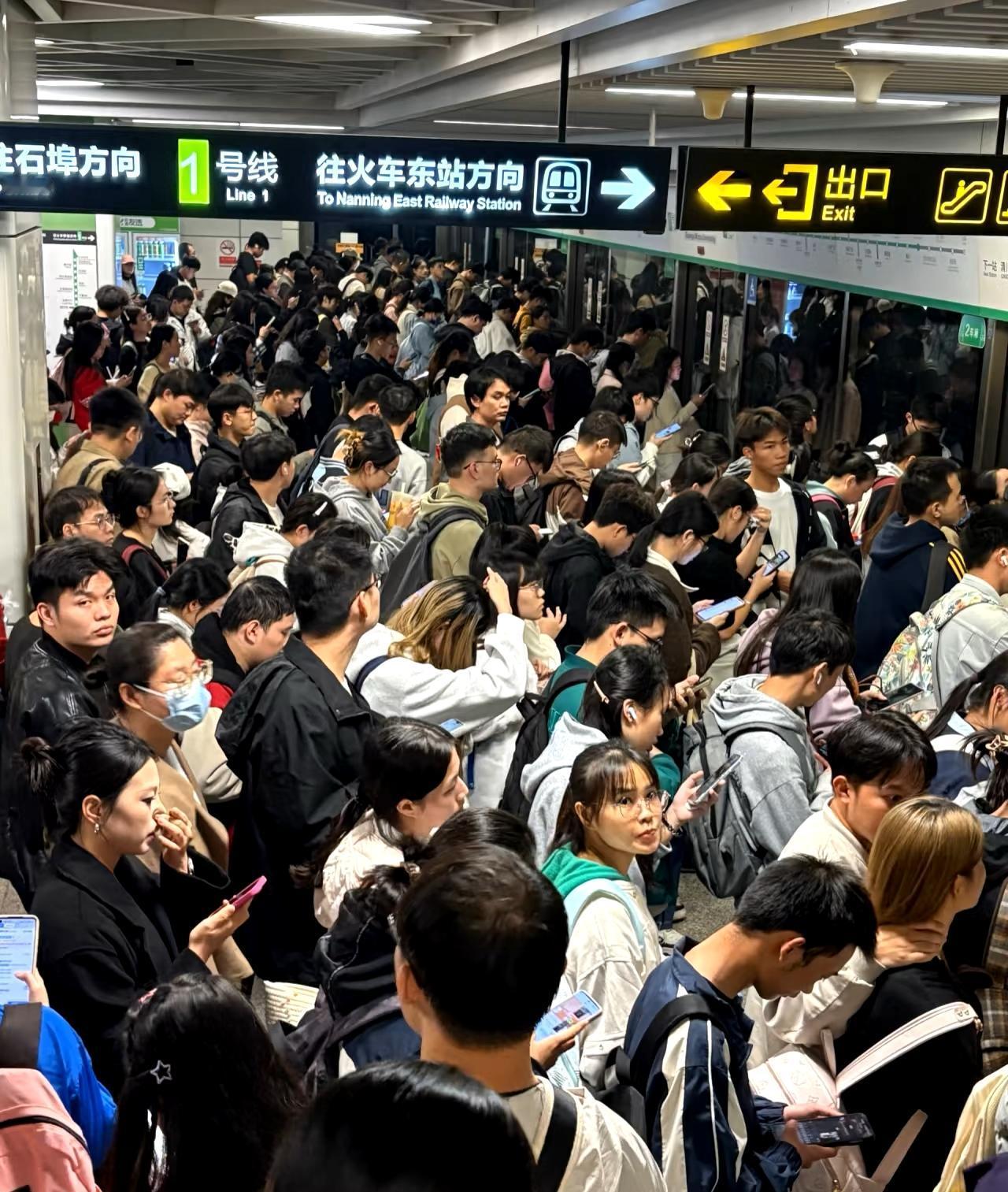 今日的南宁地铁堪比广州3号线。 国考,邓紫棋演唱会,周末(县城学生进市区过周末),学生休息,来南宁玩的人 buff叠加了。
