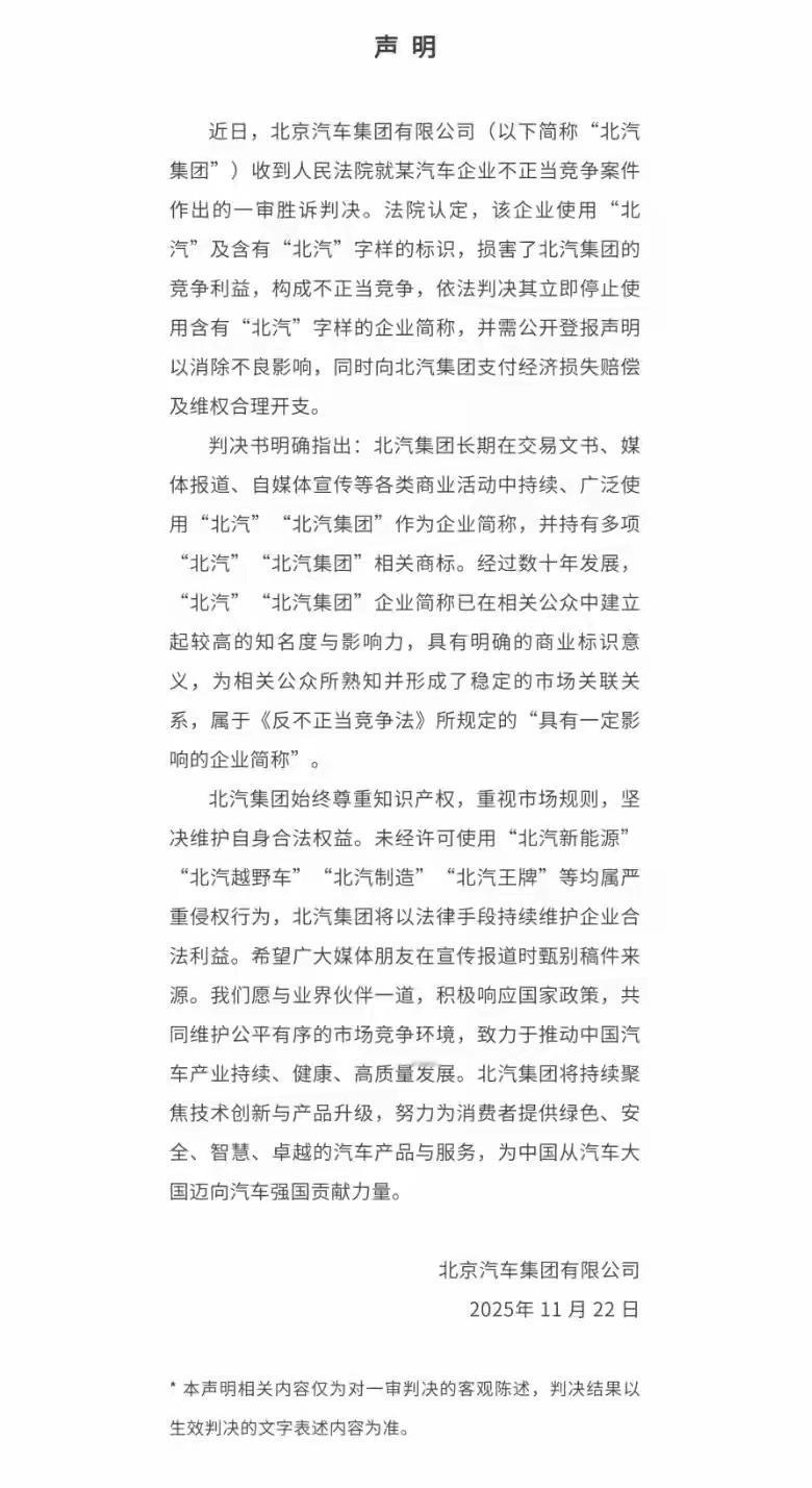 北汽集团要求山东方面停止使用北汽商标,关键打官司还赢了。 一般人都认为北汽集