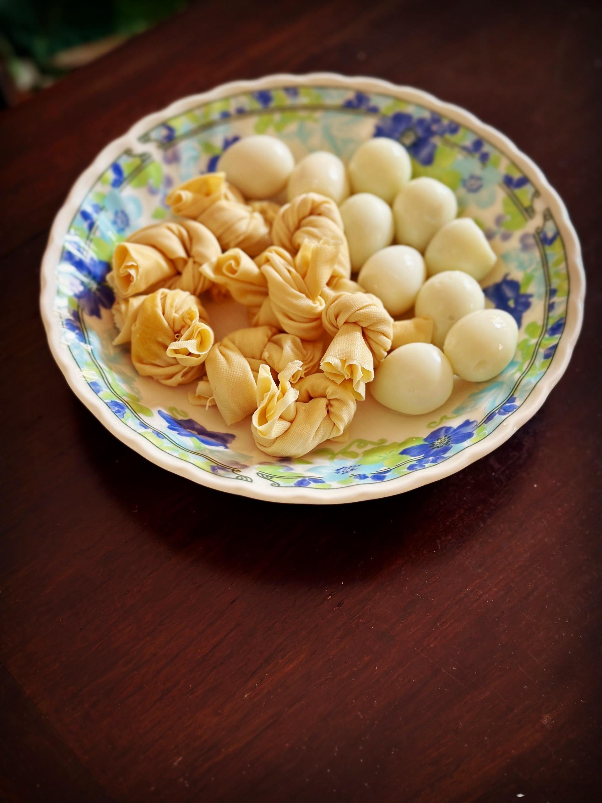 美拉德反应,自己打的百叶结松落落有软硬劲。肉少做红烧肉就很难做的很好,完全没到我自己的最高水平。但是好好吃啊。