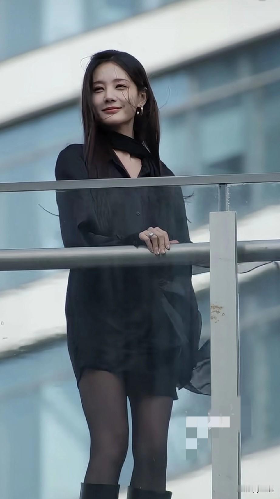 李一桐黑衬衫配轻透质感,在风里自成焦点, 简约松弛的穿搭
