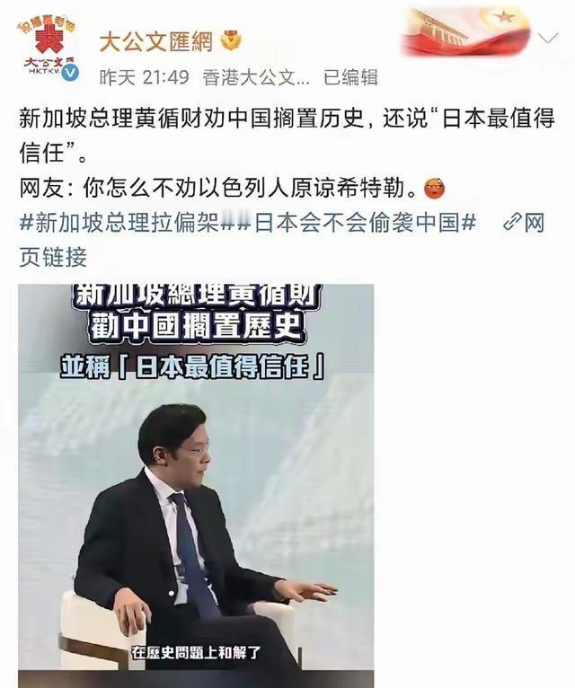 还是大公报会整活。新加坡的国运用完了。李光耀时期透支了新加坡的国运。往后便是一代不如一代。作为骑墙派,一定要足够聪明,不然都对你不爽。黄循财怎么不去劝说以色列放下对伊特勒的仇恨?这种不学无术的总理会让新加坡走向绝路。当你说“尖阁列岛”而不是“钓鱼岛”你就已经站队了。必须要算账。 新加坡这小国,夹在大国中间,本该是玩平衡的行家,可最近黄循财那番话一出口,等于自己砸了自己的招牌。11月19日彭博新经济论坛上,他谈中日钓鱼岛争端,直接用日本叫的“尖阁诸岛”,还说日本想降温,希望中国也一样,东南亚早把历史搁一边了。这不是明摆着帮日本说话吗?钓鱼岛是中国领土,这点国际上谁不清楚,他偏用日方说法,立场就露馅了。网友一看就炸锅,X上到处是吐槽,说他不学无术,劝受害者别记仇,却不戳日本首相高市早苗那堆涉台挑衅言论。 大公报这次没客气,直接点名新加坡操作失误,国运快耗光了。李光耀那辈靠精准定位,把新加坡从穷岛变金融中心,华人占多数,经济上和中国绑得紧,安全上靠美国撑腰。可黄循财这代,国际格局变了,大国博弈白热化,小国骑墙得更聪明才行。他不去劝以色列别老提二战旧账,反倒对中日指手画脚,这不是找不自在?港媒和大陆网民直批他假中立,站队日本,忘了新加坡自己也挨过日军铁蹄。民间反弹大,新加坡本地华人社区也议论纷纷,觉得这等于自断后路。 李显龙出来帮腔,说新加坡不是中国,这话听着像事实,可在当下语境下,等于火上浇油。媒体传他私下回应友人时这么讲,瞬间被放大,网友挖旧账,说以前新加坡跟台湾地区那点非正式互动还没清呢,不提不代表忘了。台湾地区防务部那些动作,新加坡过去总保持距离,现在黄循财这操作,让人觉得骑墙派底气不足。李显龙卸任后本该低调,他这句一出,东盟内部都看热闹,马来西亚和越南媒体转载批评,说新加坡平衡术失效,两头不讨好。 说到底,新加坡国运这东西,本就靠外交智慧攒的。李光耀时代,抓准全球化红利,建港口、拉投资,华人社群稳住根基。可现在贸易战、台海风波一堆,黄循财不守底线,经济上中国占新加坡出口三成,旅游投资都指望这头,得罪了谁吃亏?日本是第三大投资国没错,但它扩军、改教科书那些事,早让地区不安。新加坡想当调停者,得先认清谁在挑事,高市早苗那“台湾有事就是日本有事”的鬼话,解放军都警告了,黄循财却劝中国大度,这逻辑站不住脚。 骑墙派难做,得够机灵才行,不然中美日谁都不待见你。新加坡面积小,资源少,全靠中立吃饭,现在这步棋走偏,股市小跌,订单延误,裕廊工厂都开始愁。东盟峰会时,其他国家私下摇头,说新加坡别自以为代表东南亚。日本外相递名片,黄循财点头哈腰,可中国游客预订量掉,贸易伙伴生疑,这账怎么算?李光耀留下的遗产,本是精准拿捏,现在一代接一代,感觉越来越吃力。黄循财上台才半年,就踩红线,网友说这是不学无术,带新加坡上绝路。 国际上,小国生存靠底线思维。新加坡过去在南海、中菲争端上喊和平,效果还行,可这次涉主权,含糊不得。外交部毛宁例会上重申钓鱼岛是中国固有领土,外部势力慎言,这话直指新加坡。舆情发酵,东盟声明呼吁对话,日本暂缓涉台表态,新加坡外交赶紧转务实。可裂痕在那,信任没了,经济韧性就弱。中国海警巡航继续,日本自卫队动作频频,新加坡夹中间,进退两难。李显龙那句“新加坡不是中国”,本该是身份澄清,现在听来像推卸,新加坡得醒醒,别总想着投机。全球化退潮,大国竞争烈,小国得守核心利益,尊重事实。黄循财这事,给所有骑墙派提个醒:聪明不是耍小聪明,得有格局。