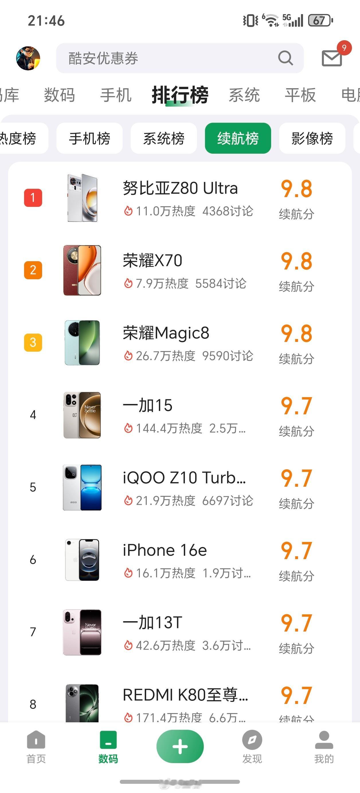 旗舰手机哪家强2025旗舰手机最爆标准版在酷安手机榜,性能榜与续航榜上,荣耀Magic8标准版和Pro版自发布以来,热度与评分始终居高!尤其是标准版,堆料确实猛,甚至超越了不少同期的旗舰机型,用户讨论度也高