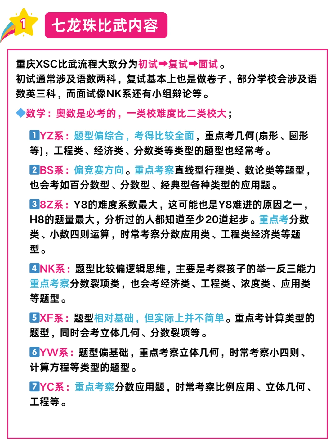 整体而言,重庆七龙珠所有学校考察知识点范围一致,题量大,需要平时抓基础题提高做题速度💪💪