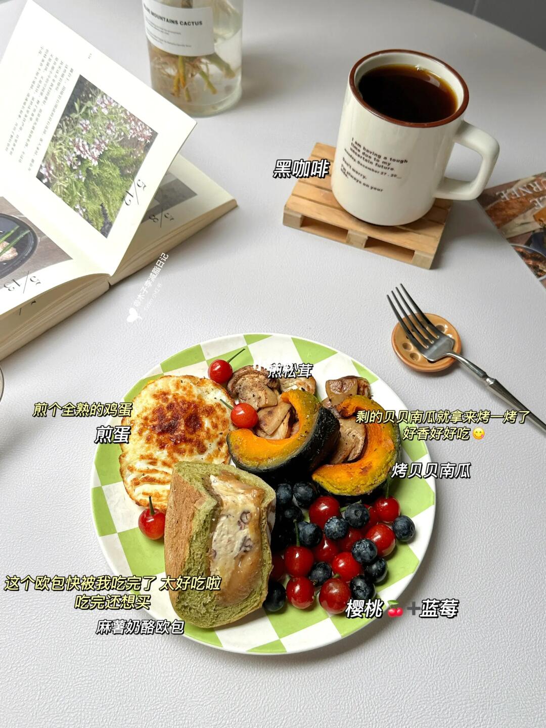 ▪️初始体重:120斤 ▪️已➖28斤 ▪️现重:🈚 - 🥣早:烤南瓜🎃 | 煎蛋 | 蓝莓 | 樱桃🍒 | 黑咖 | 麻薯奶酪欧包 | 煎芦笋 🥣午:西红柿猪肝面 | 白开水 🥣晚 :牛奶🥛花胶 🏋️运动:🈚 💧喝水2000ml➕ - 📝好久没吃麦当当了。昨天早餐就吃了,好喜欢薯饼和吉士炒蛋汉堡🍔! 中午自己做的猪肝面🍜也好好吃哦,一点也不会黑暗哦,嗦面真满足😁 好好吃饭。多喝水,多吃蔬菜,少熬夜