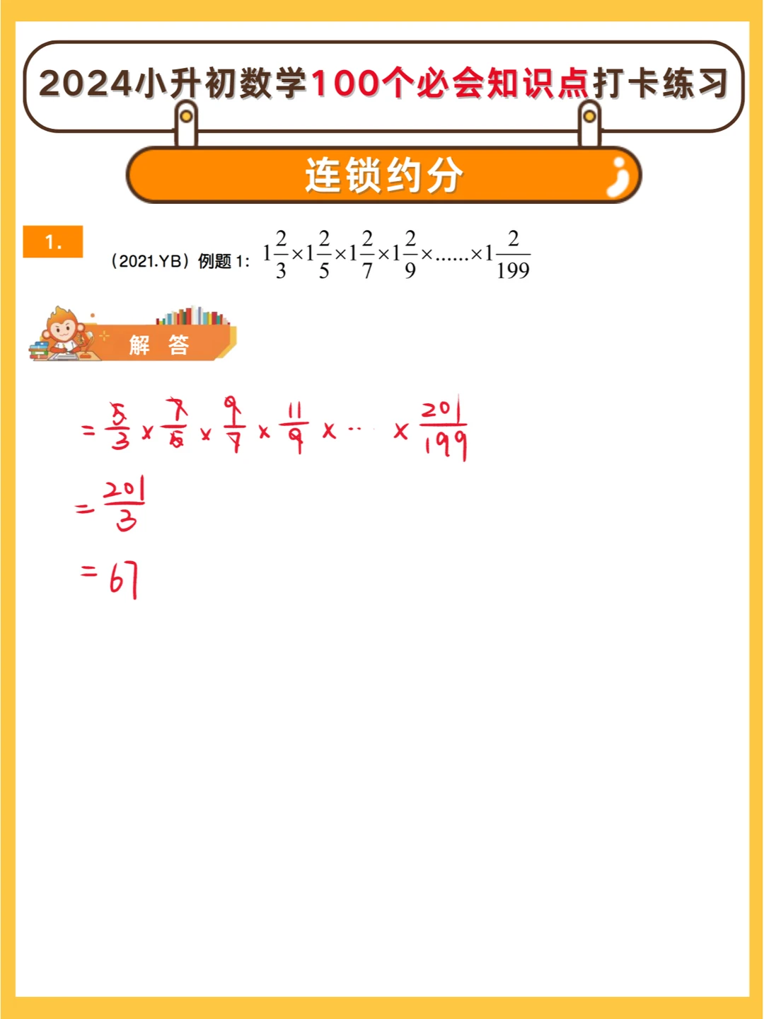 2024年重庆小升初数学100个必会知识点打卡练习(26-30) 2️⃣1️⃣分数裂和 2️⃣2️⃣整数裂项 2️⃣3️⃣连锁约分 2️⃣4️⃣整体约分 2️⃣5️⃣换元法 这次来到计算板块了,不知道大家这些计算技巧掌握得怎么样?